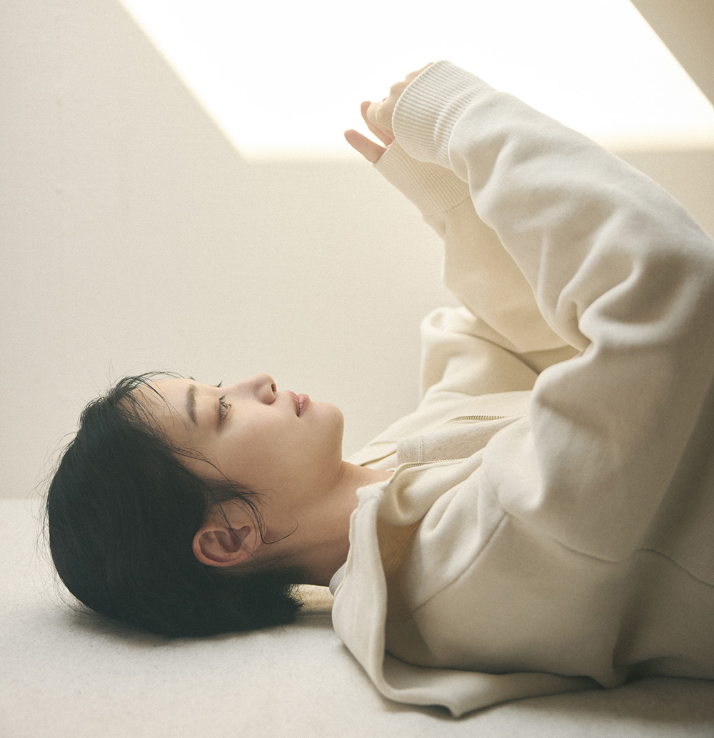 Worn by actress Noriko Iriyama, the Creamy Cotton collection from SALON adam et ropé conveys an elegant touch within a relaxed mood.