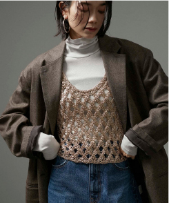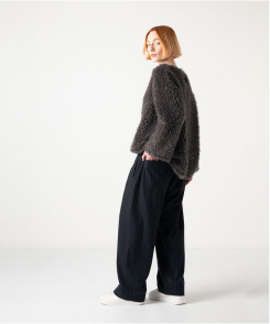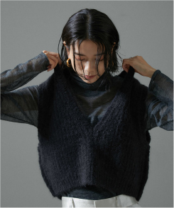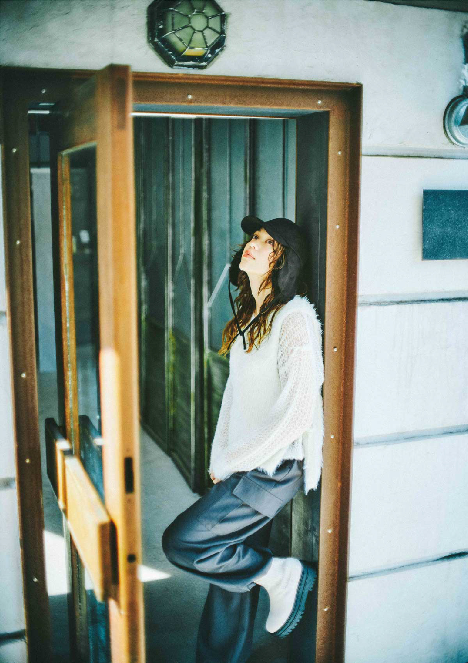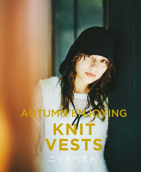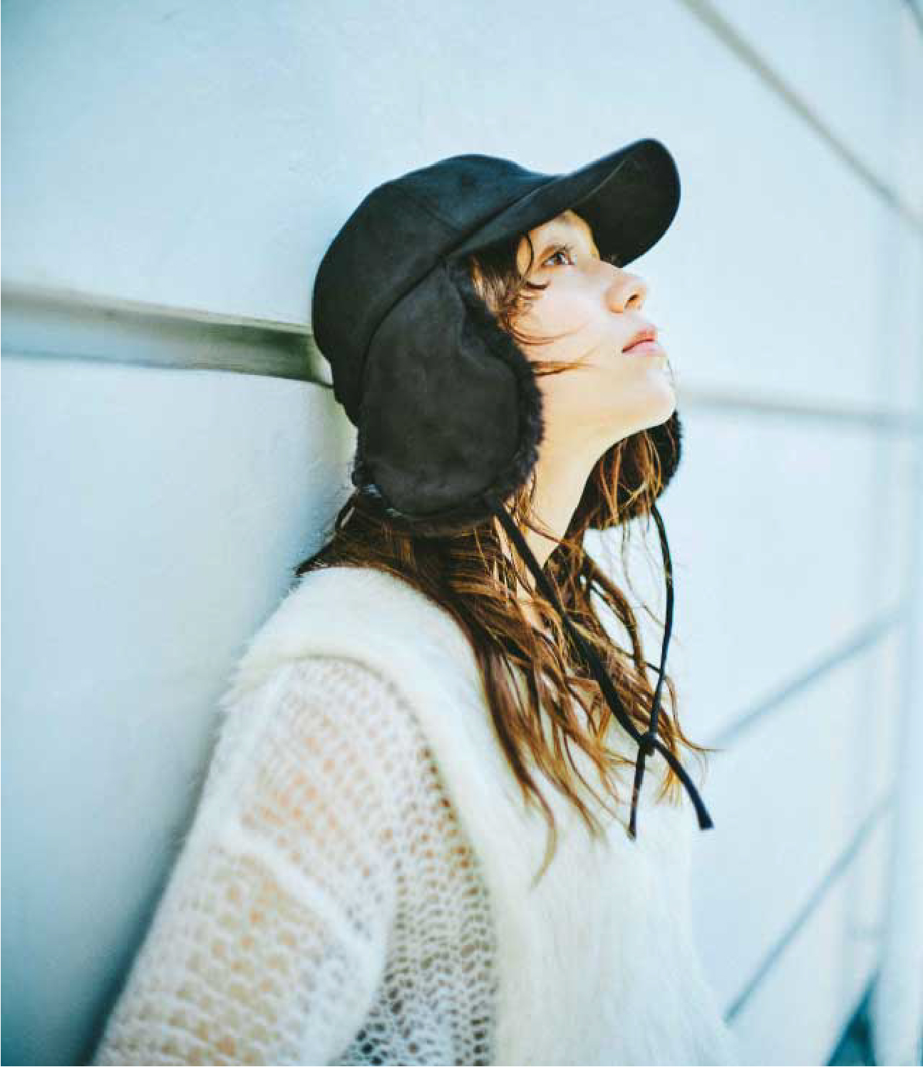 シャギー素材のベストとローゲージニットを着回し。ハンサム派は、カーゴパンツやボリュームソールのブーツでラフに仕上げてみて。フライトキャップを被れば、秋のアクティブコーデが完成!