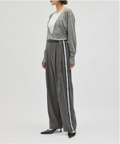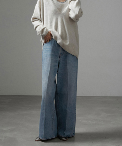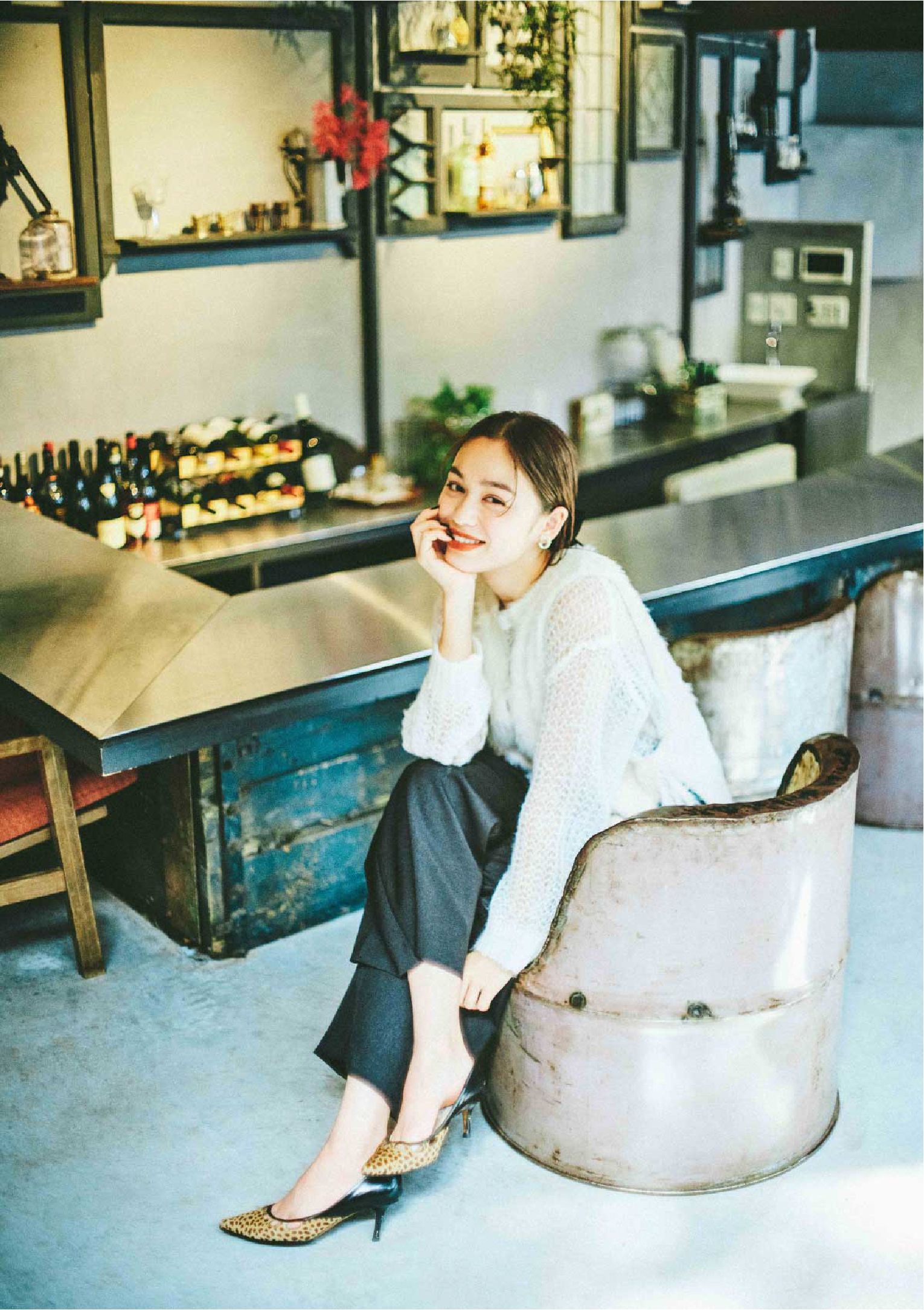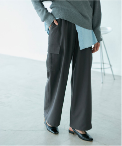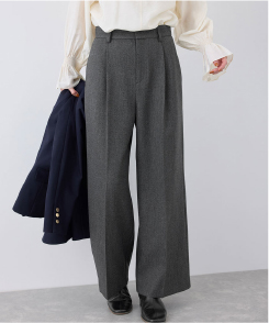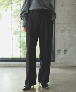 レディ派のパンツスタイルは、シルエット選びが最重要!ハイライズ×ワイドシルエットを選択して、きれいめにまとめるのが正解。長すぎないパンツの裾から、華奢な足首がチラリ。