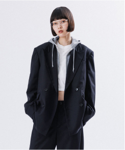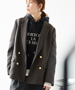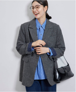 - 低身長・小柄さん向け/ウールライクサージ金ボタンジャケット