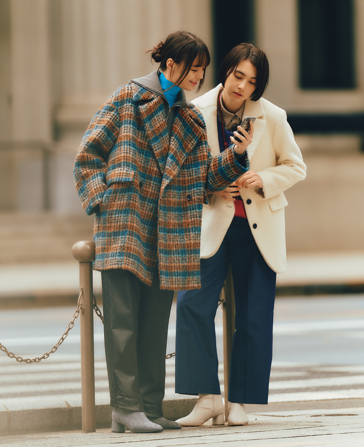街の視線をふたりじめ - 存在感たっぷりなチェック柄と、ヒロイン気分を味わえる白。浮かれた街の