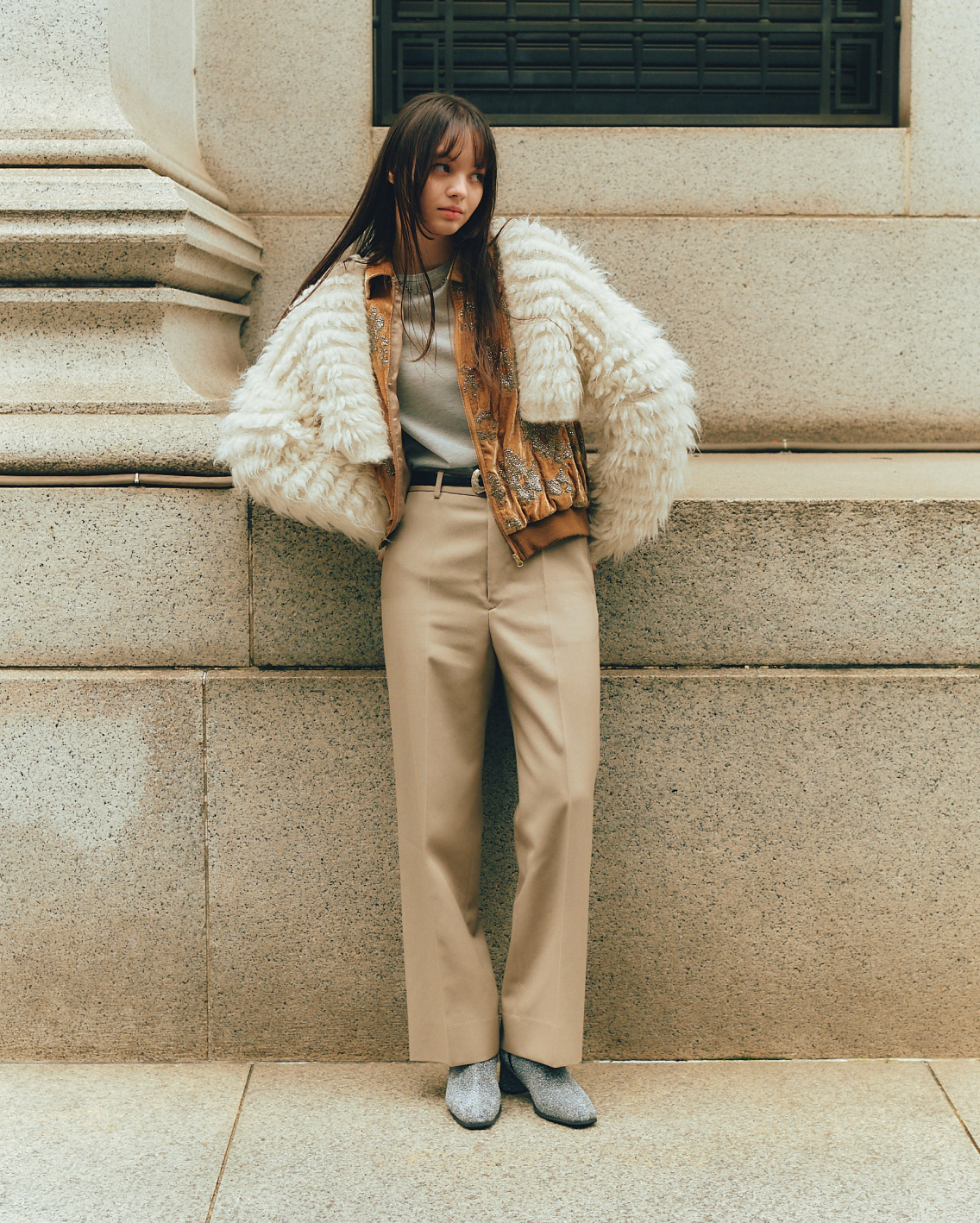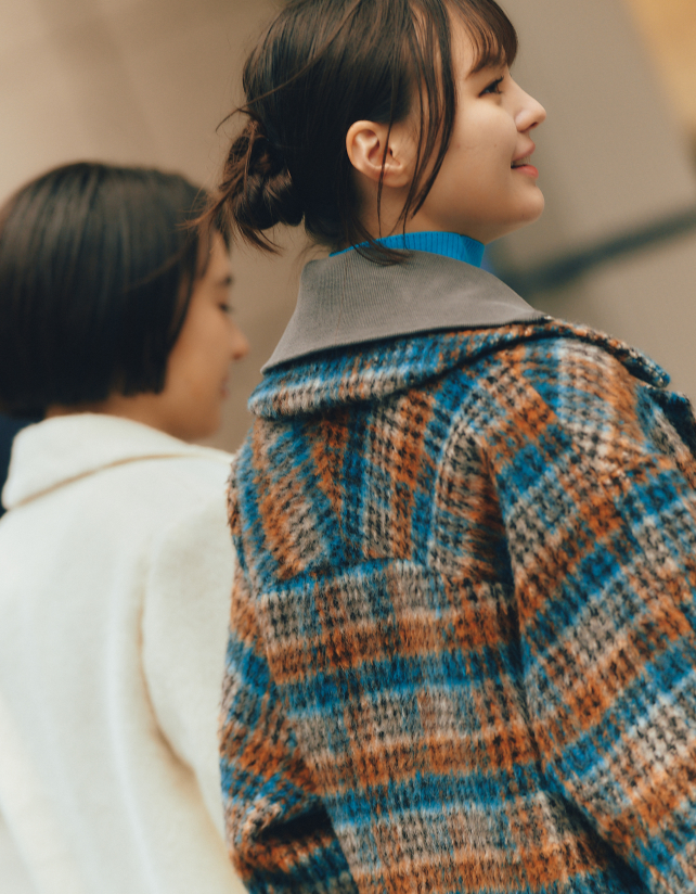 ムードにあてられて、お目立ちアウターを選んでみる。人が多く行き交う街中