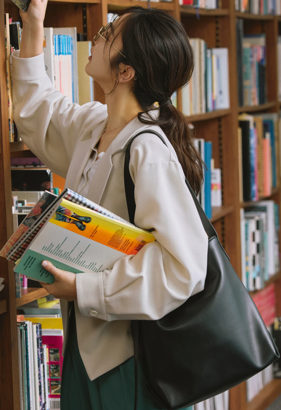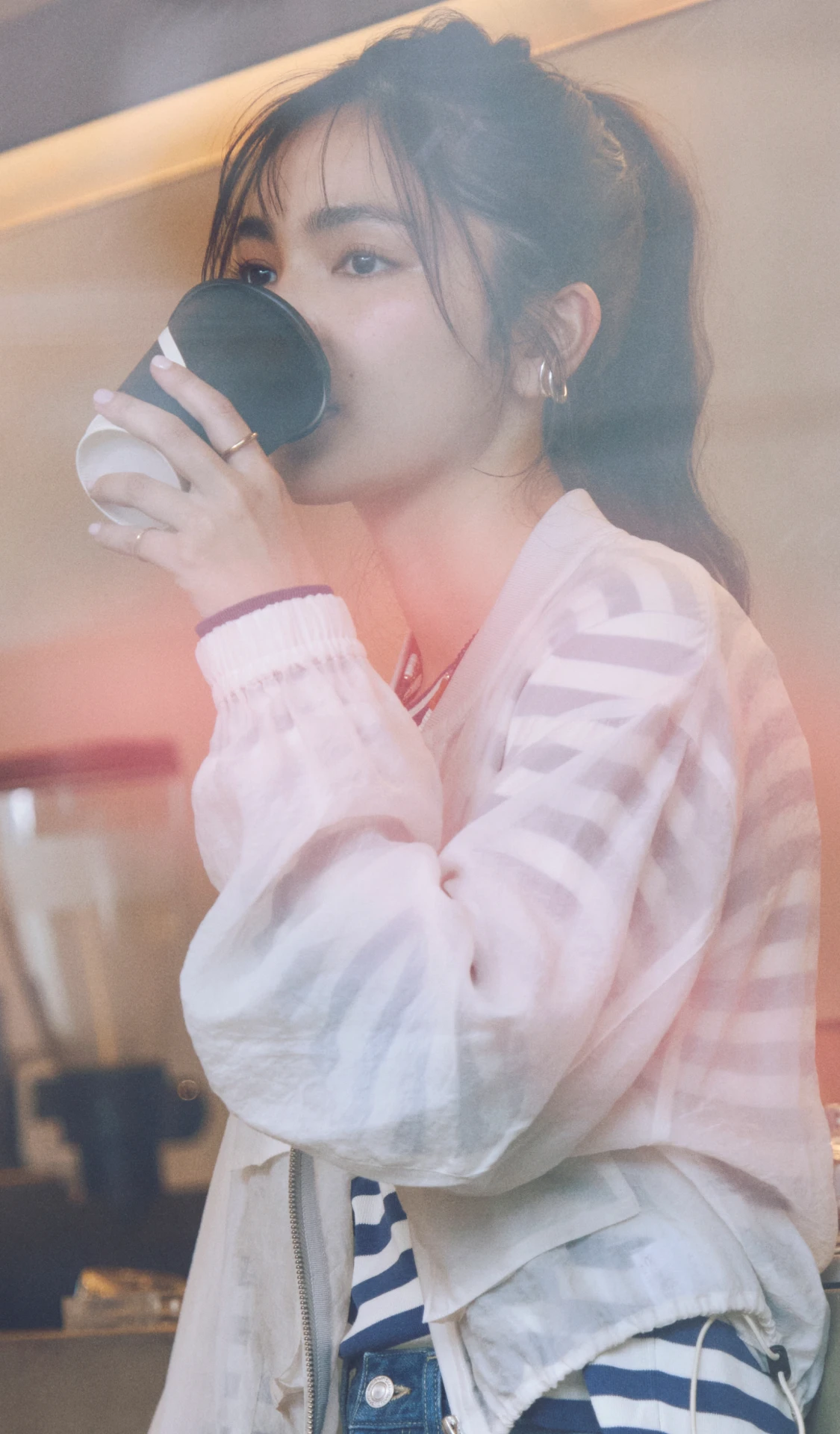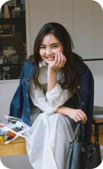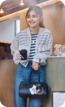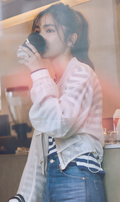 ロンTとデニムのシンプルな組み合わせには、軽やかなシアーブルゾンとライムグリーンのミュールサンダルをプラス。ベーシックにまとまりすぎず、リラックスムード漂うこなれたスタイルへブラッシュアップ。