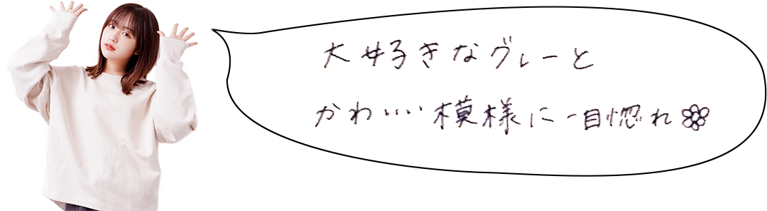 「これからの季節、こたつが欲しい!」というなえなのさん。めちゃ寒がりだということで、自然に温かみのあるアイテムもチェック。「マーメイドタイプの広がった裾と、シルエットが可愛いです」。