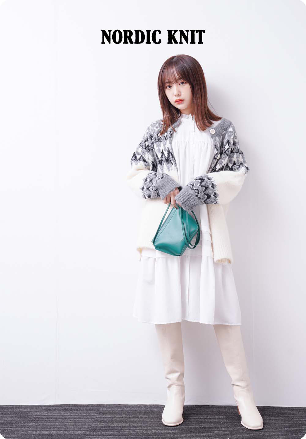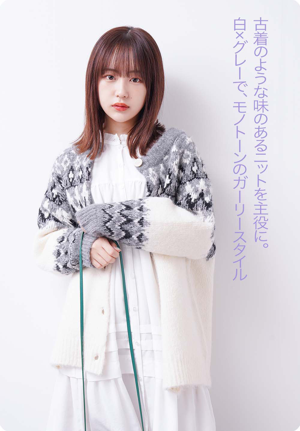 ノスタルジックなノルディック柄のニットは、カーディガンとしても、プルオーバーとして着られる2WAY。ゆったりしたシルエットで、温かみのあるムードです。お尻が隠れるくらいの丈で、パンツでもスカートでも合わせやすい、万能ニットです。