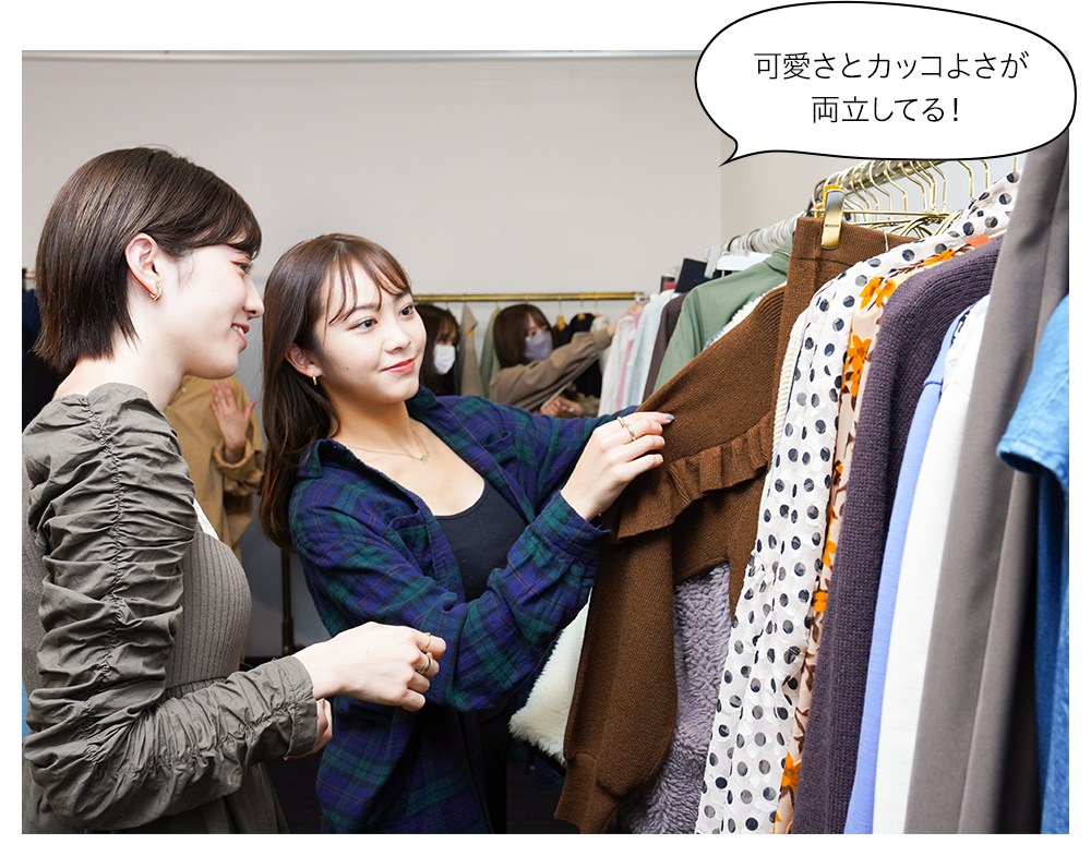 『MADEMOISELLE ROPÉ』のアイテムを選んでくれたのは、竹田そふ綾さん(左)と鈴木里奈さん(右)。二人とも、フェミニンでエッジの効いた、ブランドの雰囲気にぴったり!