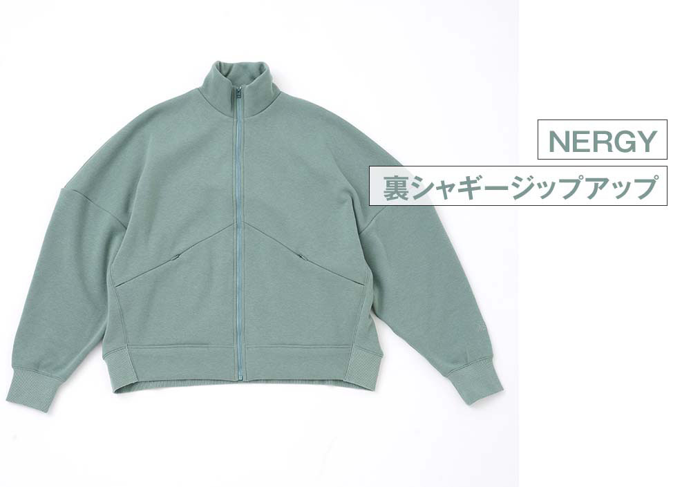 着る人の個性が光る、シンプルでスポーティーなアイテムが『NERGY』のカッコよさ。スポーツを日常の中に取り入れる、アスレジャーの考え方にぴったりマッチ!どちらのアイテムも、着心地のよい素材使いで、アクティブな動きを妨げないデザインです。