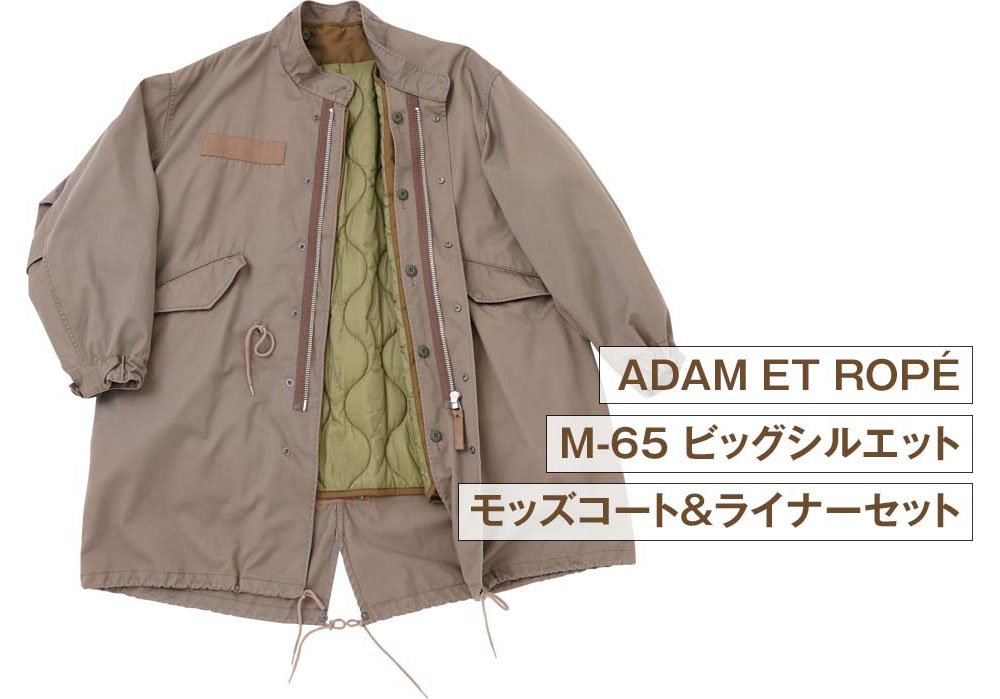 『ADAM ET ROPÉ』でも人気の高い、ハイスペックなアウターをメインにチョイス。ギミックもたっぷりのコートは、冬じゅう大活躍してくれるうえに、着れば着るほど味わいが増します。