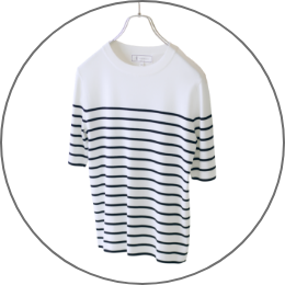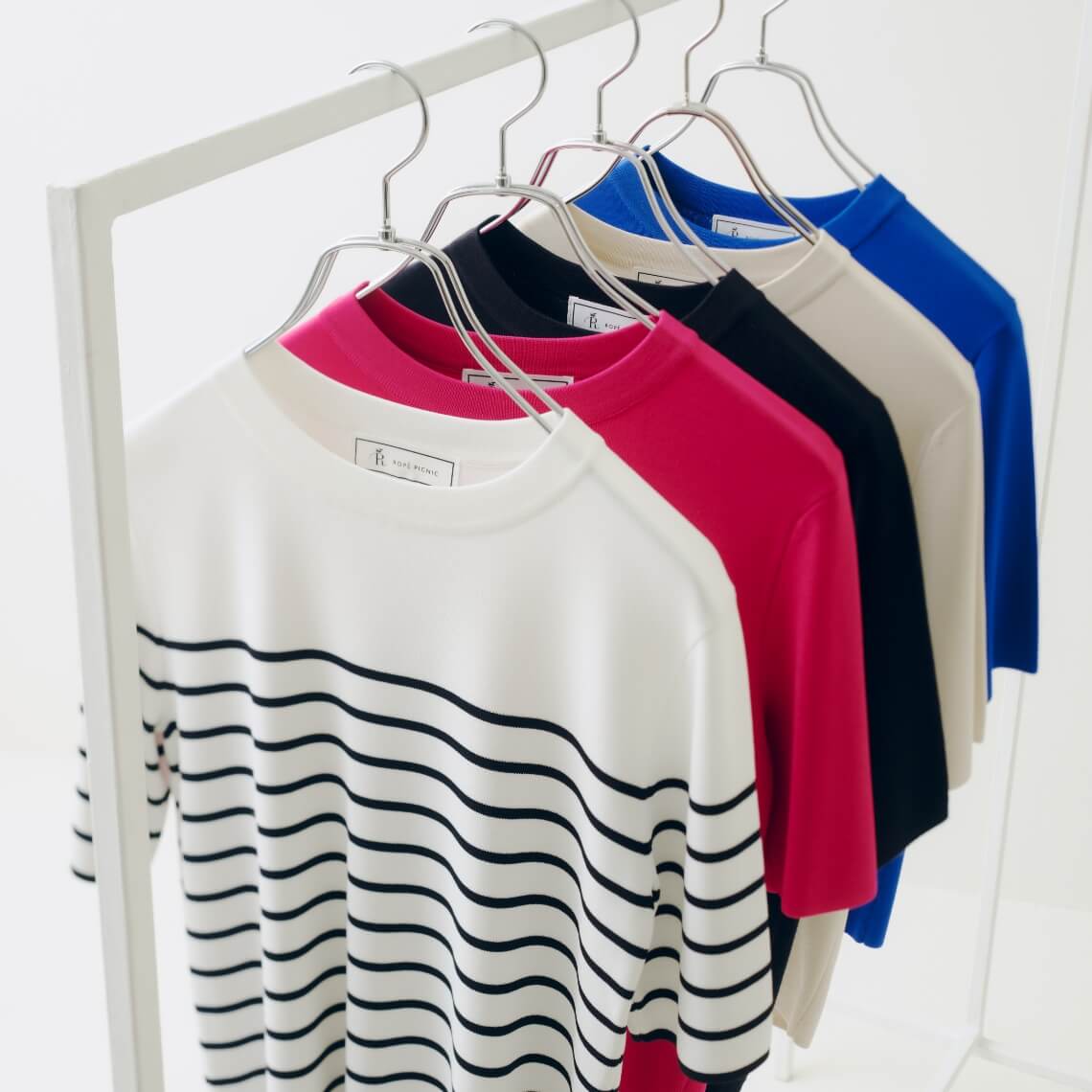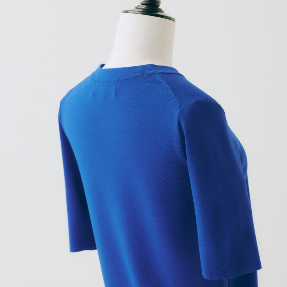 「誕生して以来、デザインなどの良い部分は残しつつ、時代に合わせて糸などを改良しています。着るだけで華奢見えするので、カットソーが苦手という方にもぜひ試していただきたい! 新色も登場していて、今年はロイヤルブルーがおすすめです」