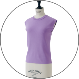 しっかりとした編み地で透けにくく、体のラインを拾いにくいのが特徴。一枚で着てもラフになりすぎず、上品に仕上がるのが名品たる所以です。微光沢生地なので高見えも期待できます。