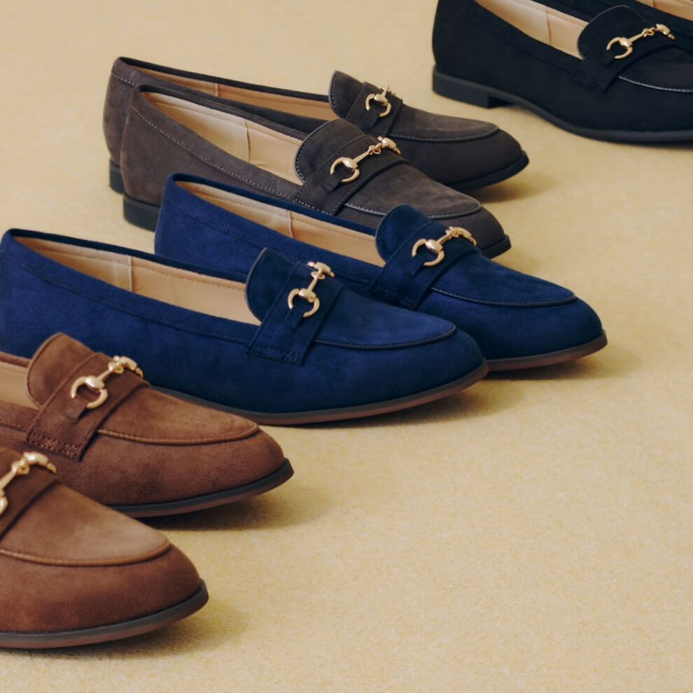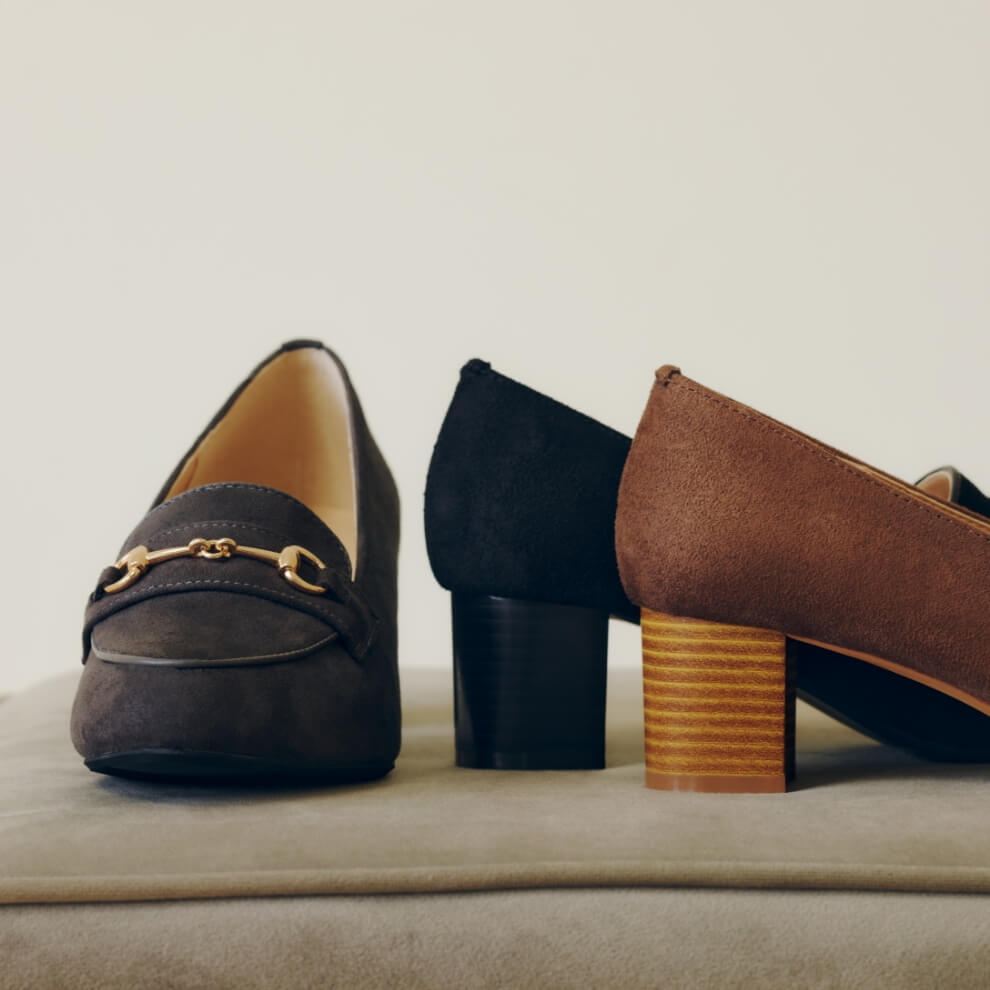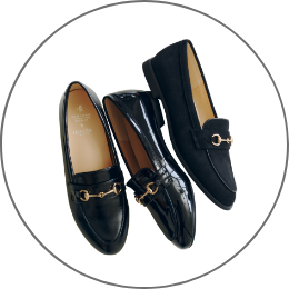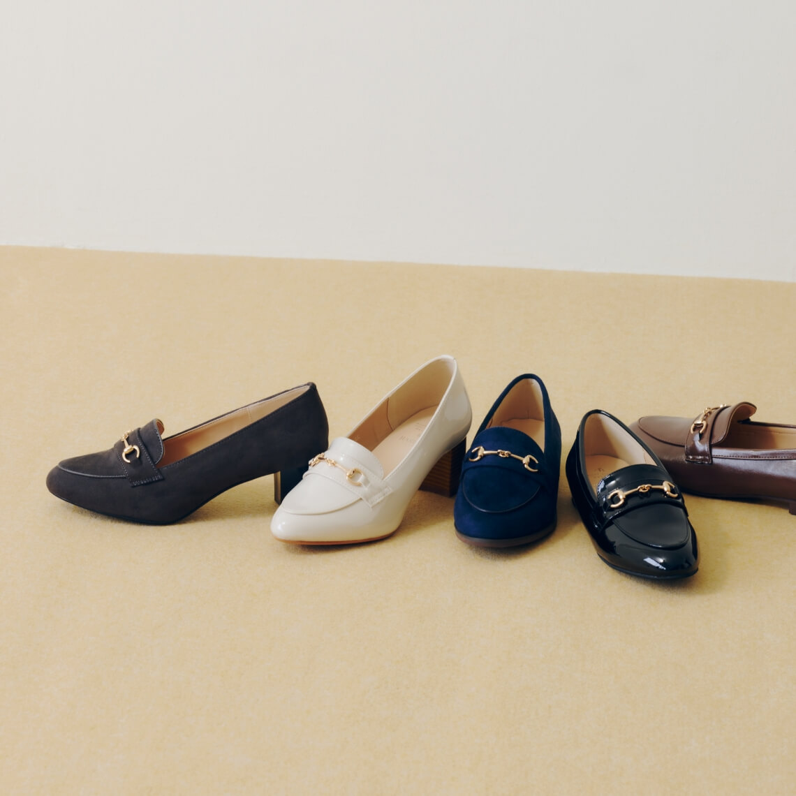 ローファーの定番であるエナメル素材に光沢感を抑えたリンクルエナメルが新登場。リッチなメタルビットとも相まってエレガントな印象です。リサイクル素材を使用したスエードは、シックで落ち着いた雰囲気に仕上がります。素材違いで2足持ちするのもおすすめです。