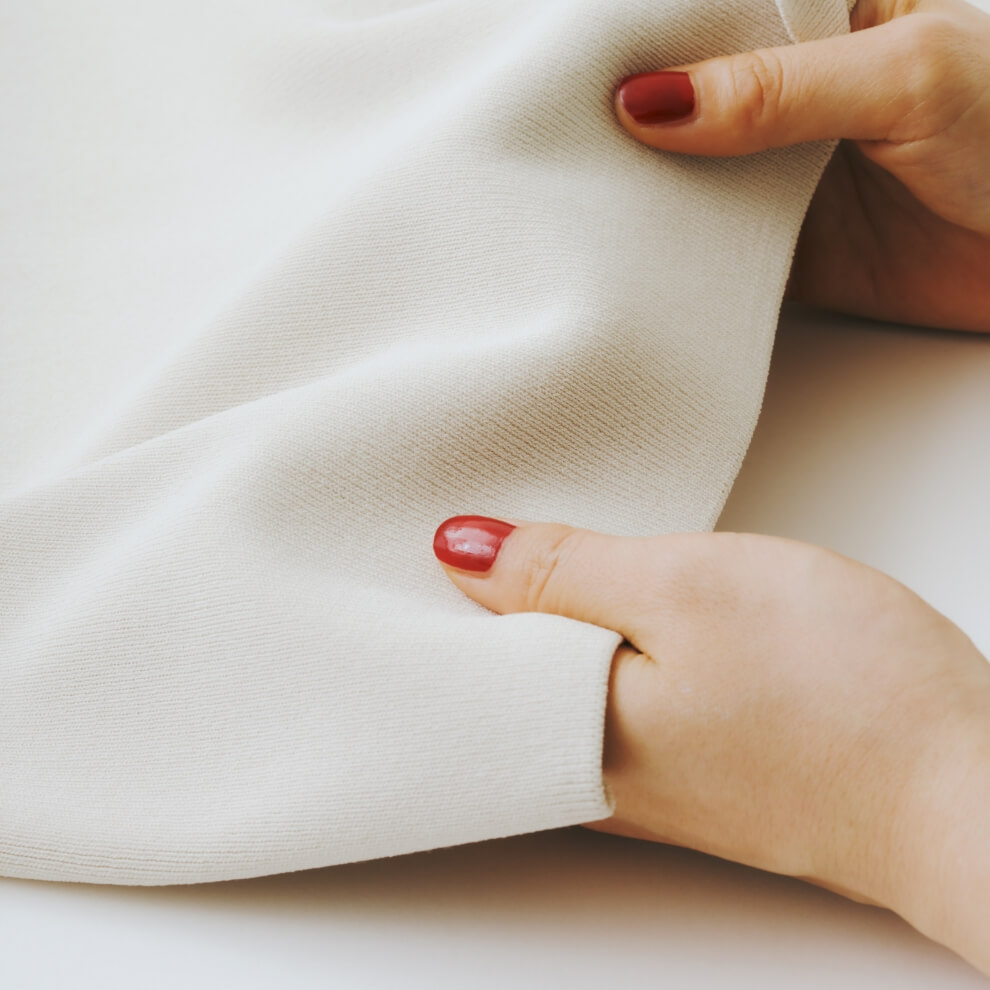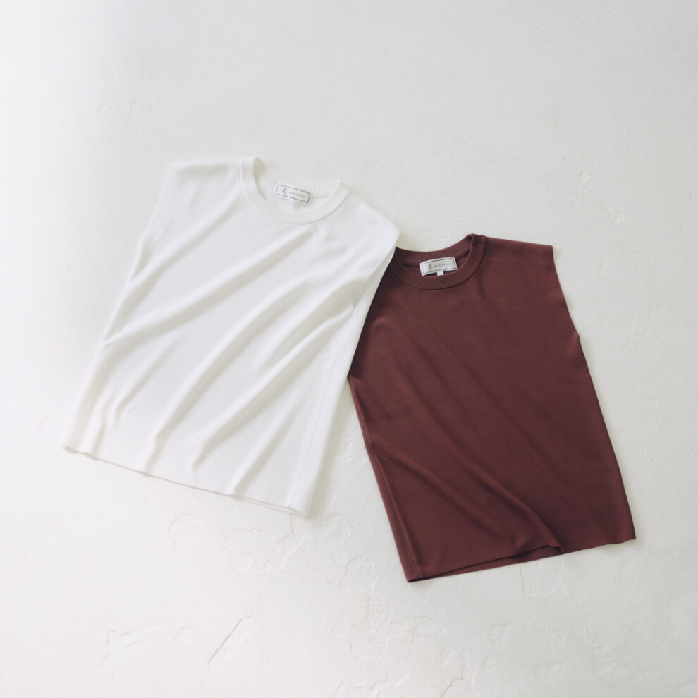 廃棄予定の綿花をリサイクルした素材を使っていて、肌だけでなく地球にやさしいのも愛されポイント! ハーフスリーブニットと同じ生地で、真夏でもベタベタしないさらっとした着心地も魅力的です。
