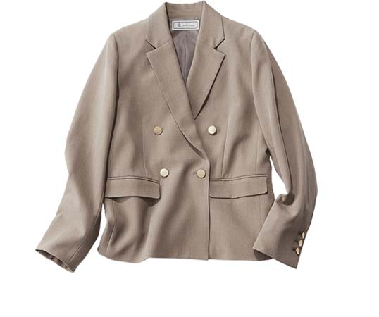 王道のスカートスーツは、色のチョイスを柔軟に。ニュアンスカラーを選べば堅苦しくならず、清潔感もアップ。なめらかなストレッチ素材を採用し、長時間、座り姿勢が続いてもシワになりにくいというのも嬉しい。