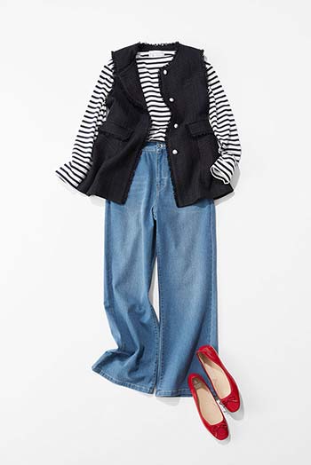 01 Tweed Vest軽やかジレでトレンド感ある着こなしに