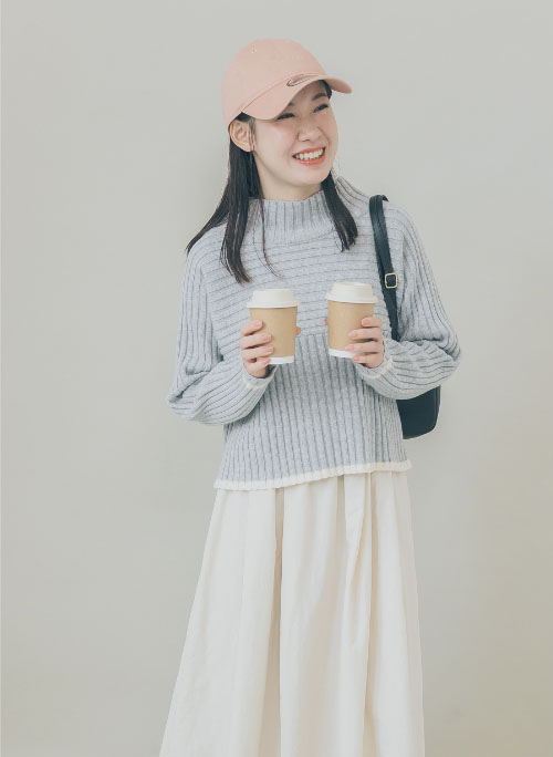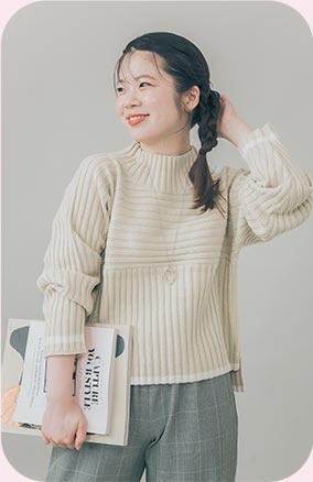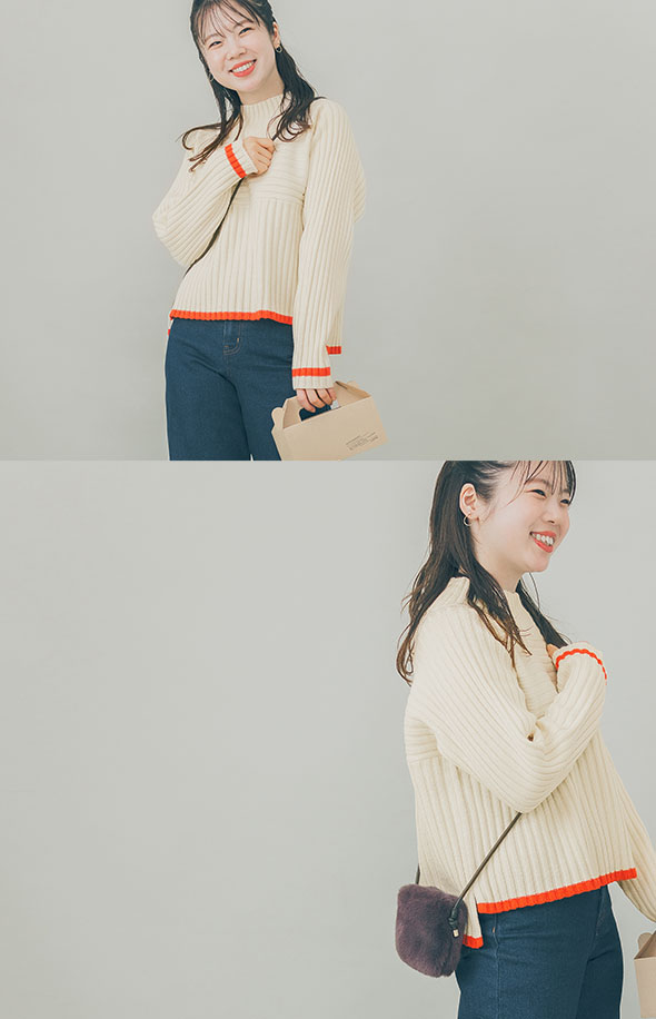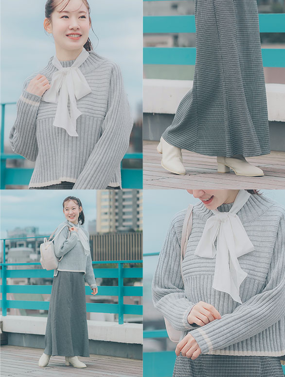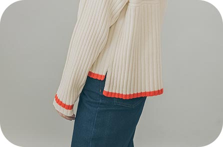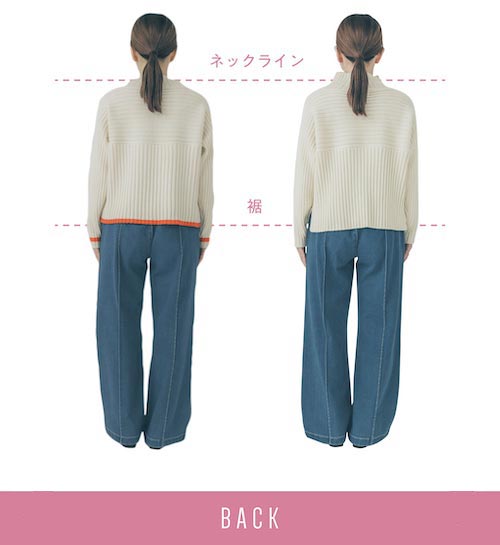 ロペピクニックの人気商品で、名品でもある“リブ切替えニットプルオーバー”が小柄な女性でもスッキリと着こなせるようにシルエットをアップデートし、さらに別注だけのオリジナルデザインを加えて登場!