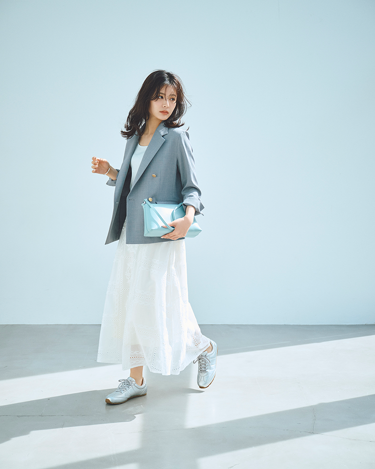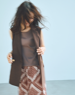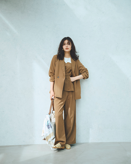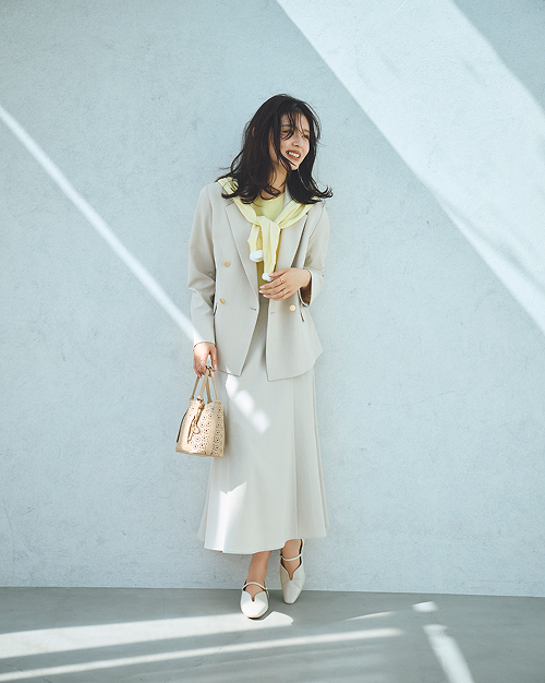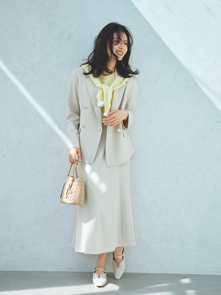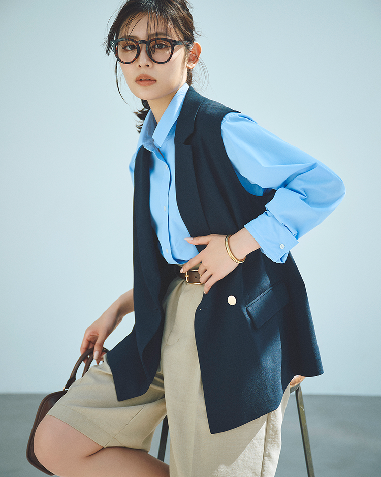 春夏のお仕事スタイルにテーラードジレという選択を。ジャケット未満の軽やかさで、さっと羽織るだけでお洒落に決まる。