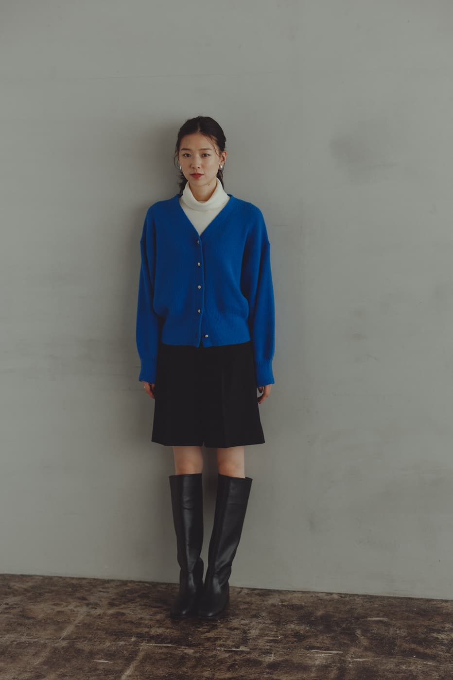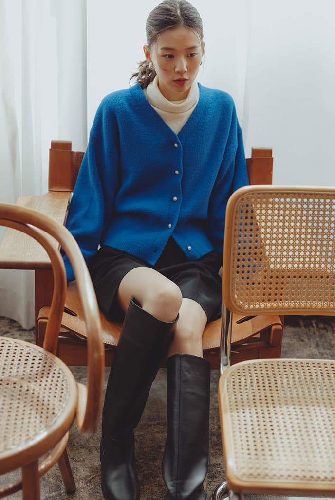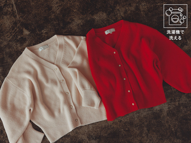 もっちり、ふんわりタッチが魅力のショートカーディガン。パールボタンが印象的な一枚は、着るだけでこなれて見える程よいドロップショルダーもポイント。