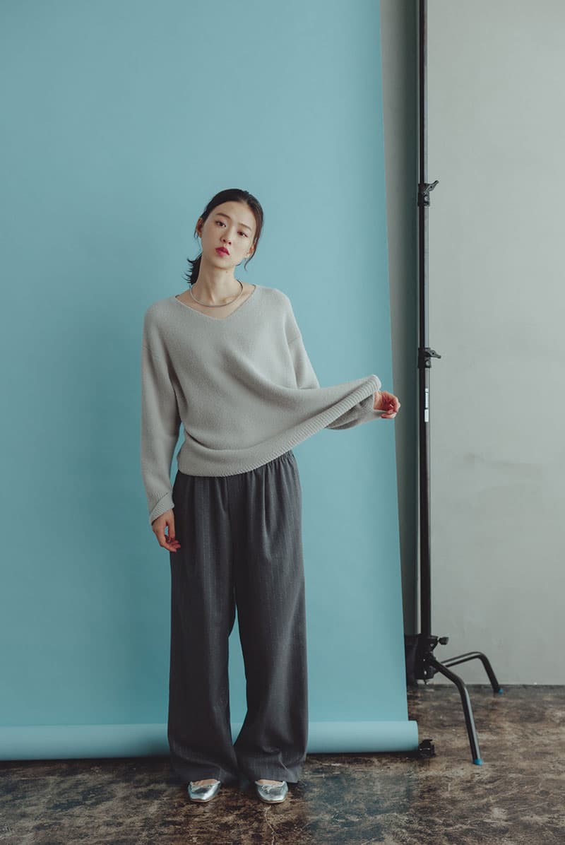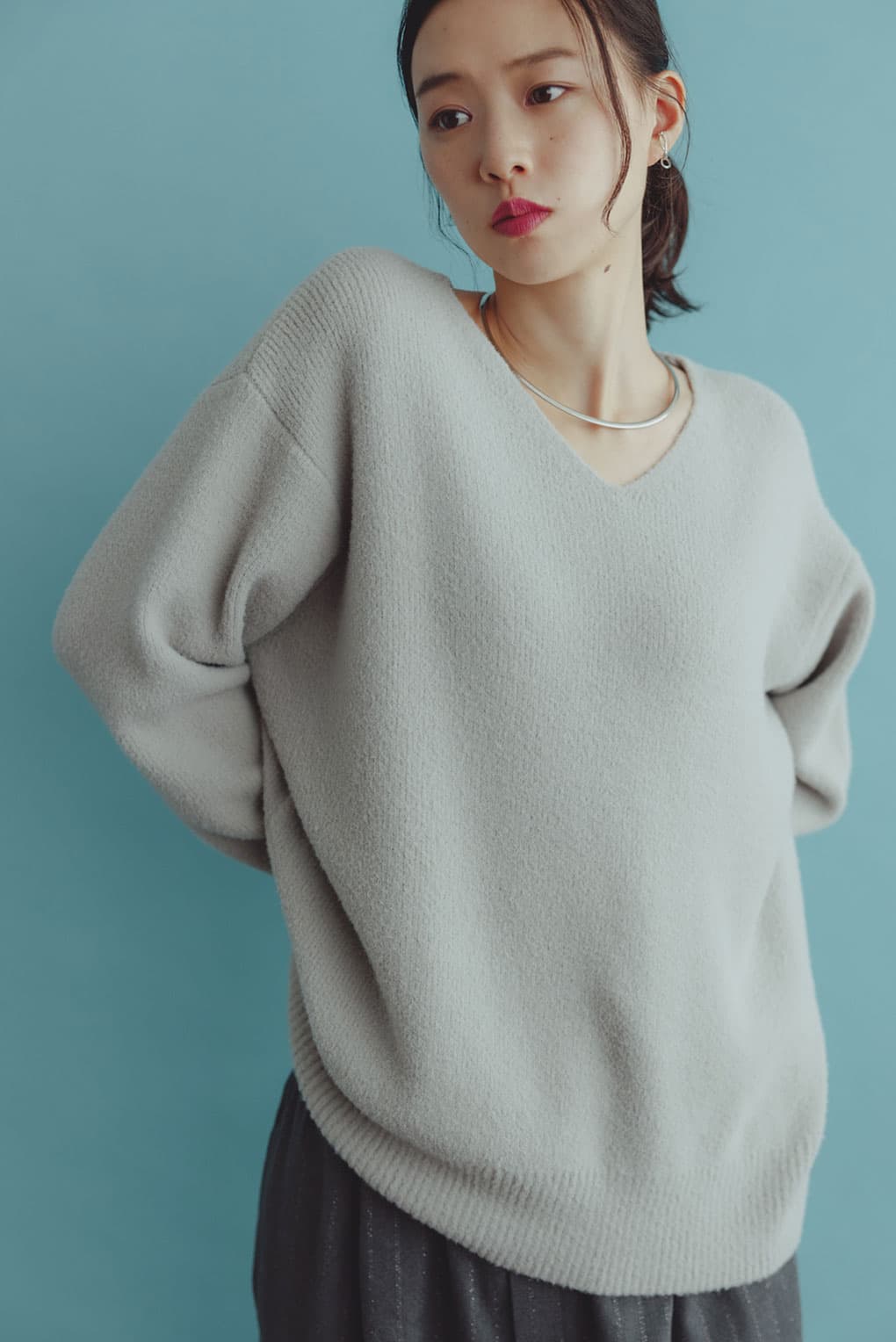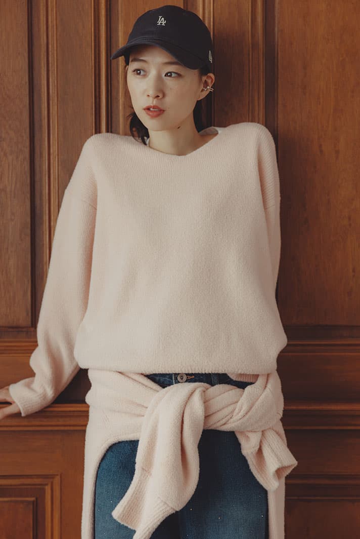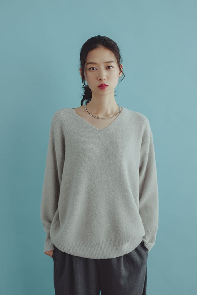 もっちり、ふんわりタッチが魅力のVネックニット。シンプルながらも、程よくリラックス感のあるサイジングで、さらっと着られる毎日に馴染む万能トップス。