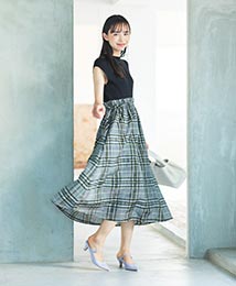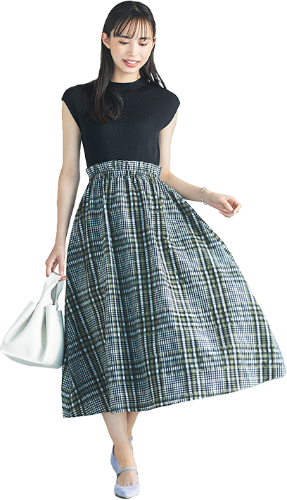 さらりとした肌ざわりのジャージを使用したトップスと、ふわりと軽いプリントスカートを合わせたドッキンングワンピ。着るだけでメリハリ感が出せるのはもちろん、フレンチスリーブのトップスと、スカートのフレアラインが作るタイト&フレアなXラインで女性らしさもプラス。ハイウエスト&ペーパーバックなウエストラインで、背高に見せる効果も。