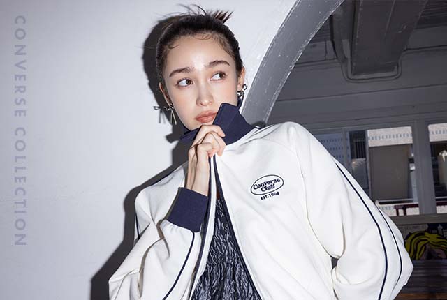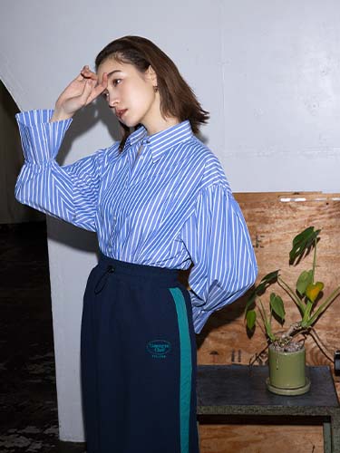 女っぽいフェミニンなアイテムとのMIXが大事!