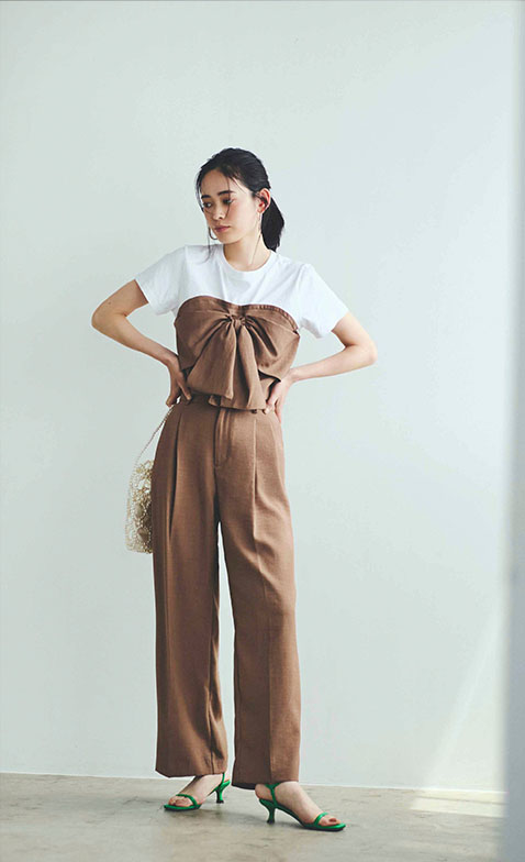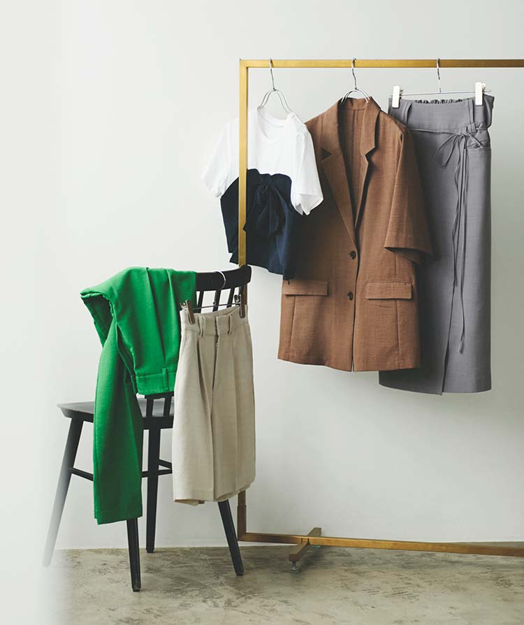 綺麗見えするシルエットにこだわったアイテム展開なので、体型のお悩みもカバー。セットアップ対応のアイテムが豊富でコーディネートに悩むことなくおしゃれに決まります。