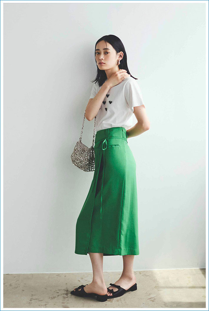 夏の定番・白Tとリネンライクなスカートをあわせた