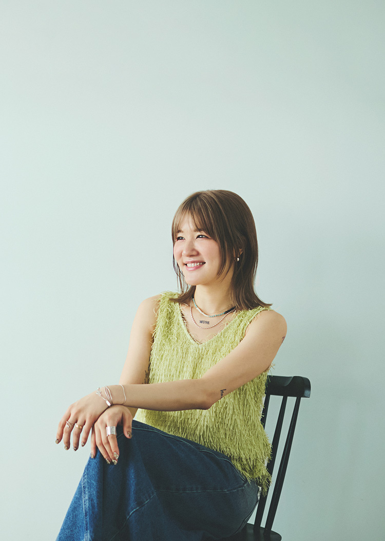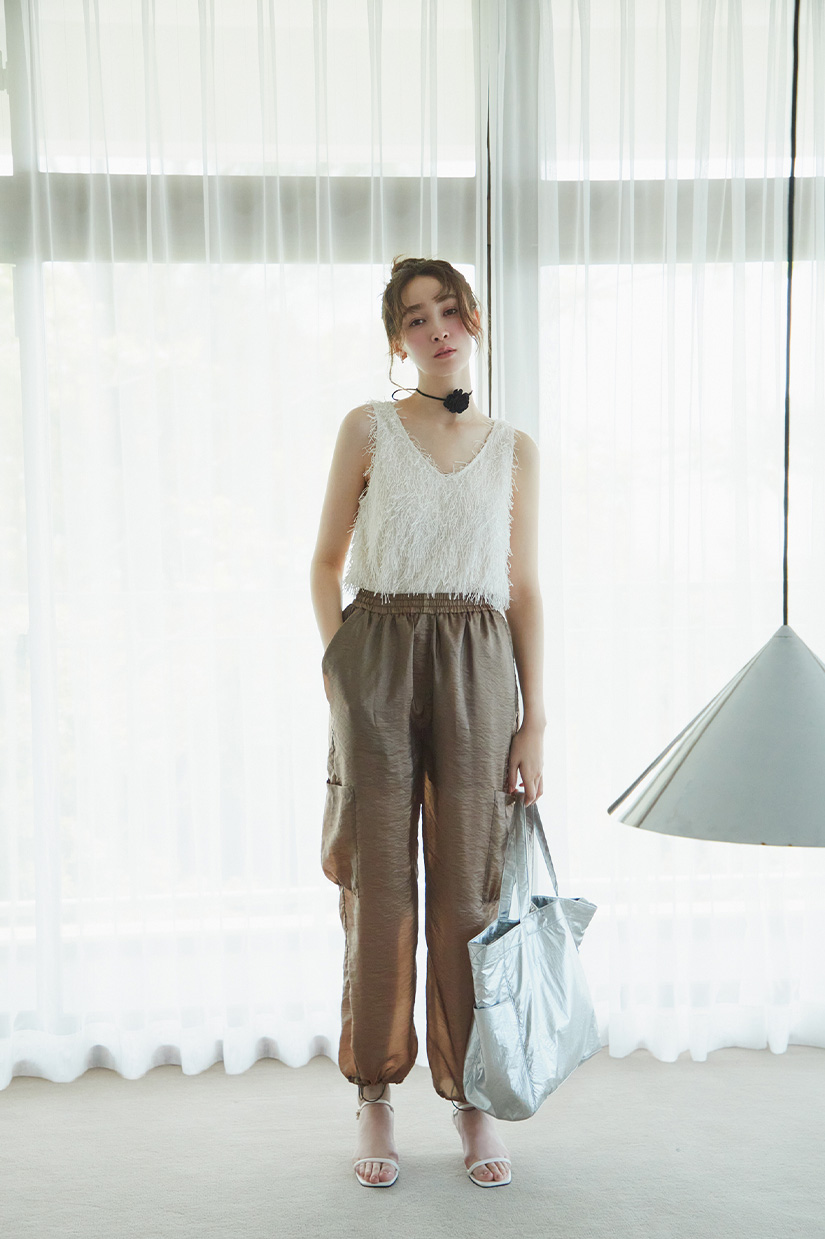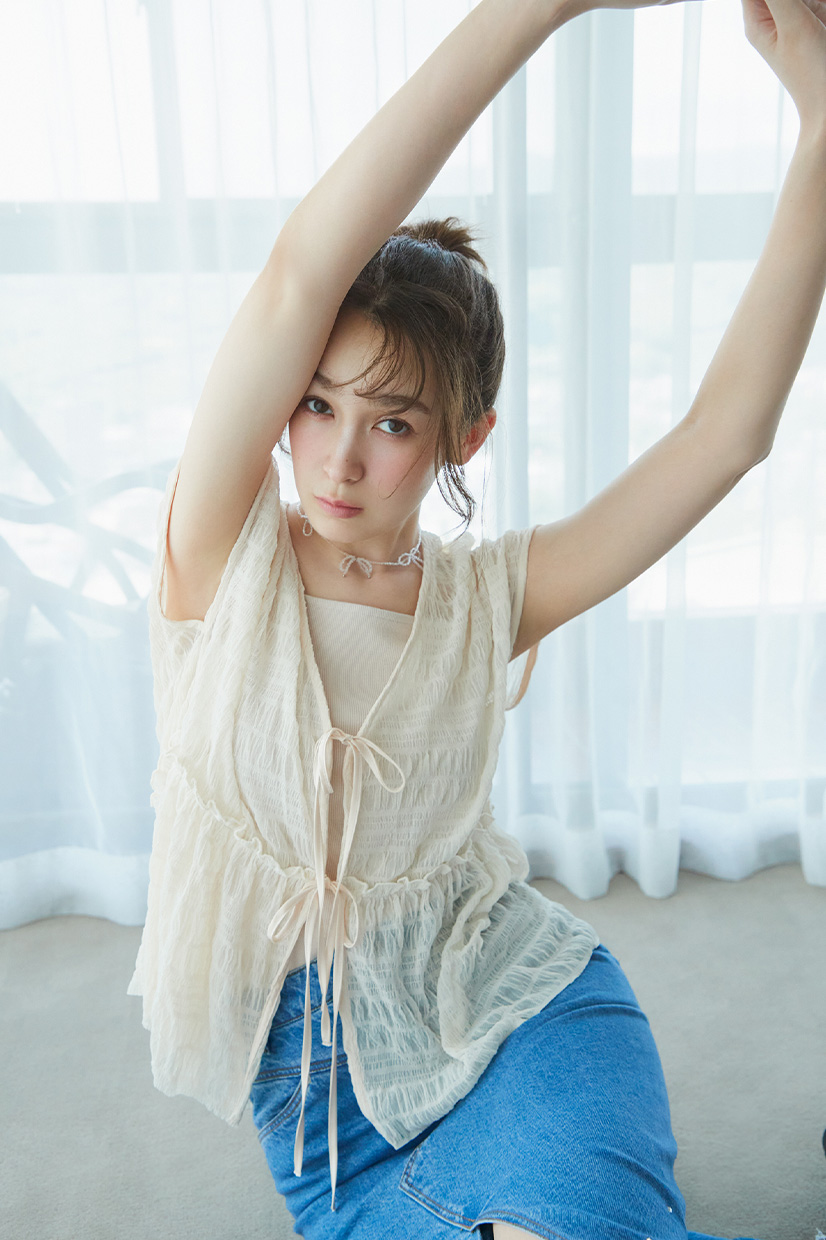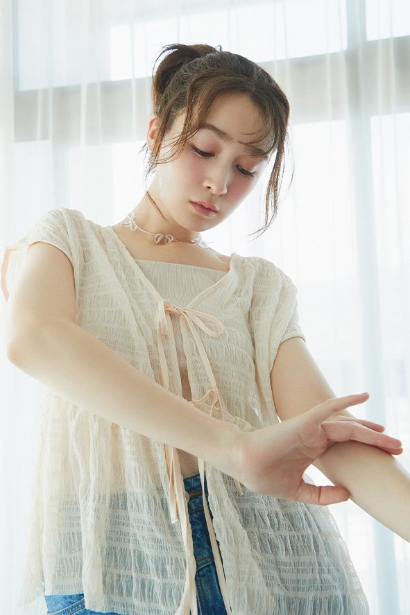 トレンドのレイヤードスタイルを1枚で完結できるトップス。