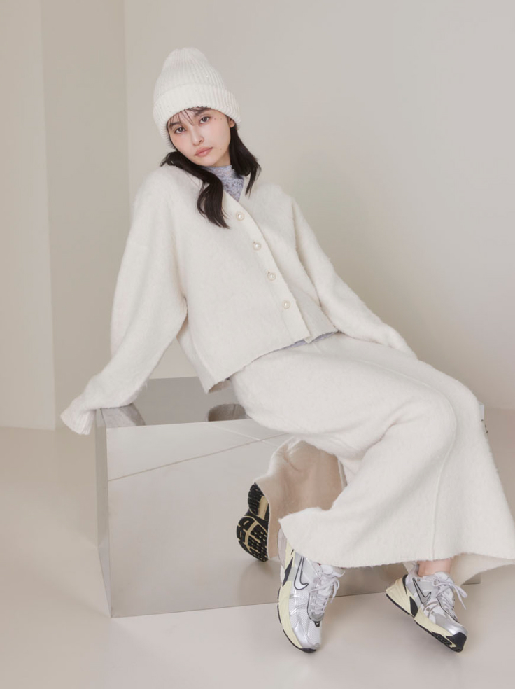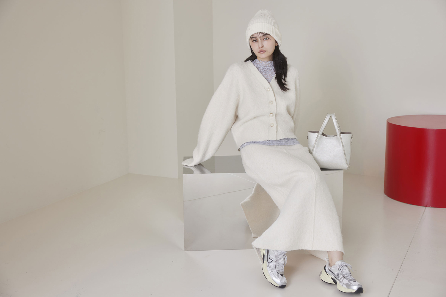 異素材の組み合わせで生まれる、今年らしい奥行きのあるホワイトコーデ。