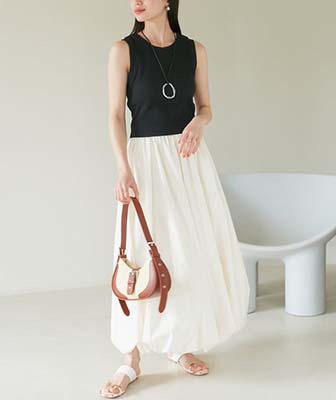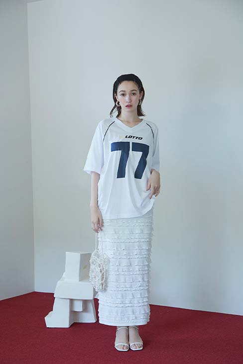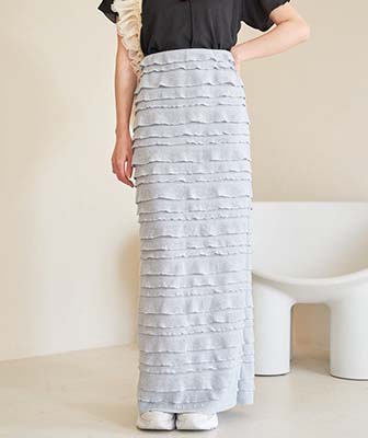 たっぷりのフリルがスイートな印象のロングスカートと