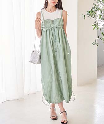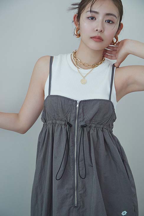 特徴のキャミワンピースはコーデの主役に◎。