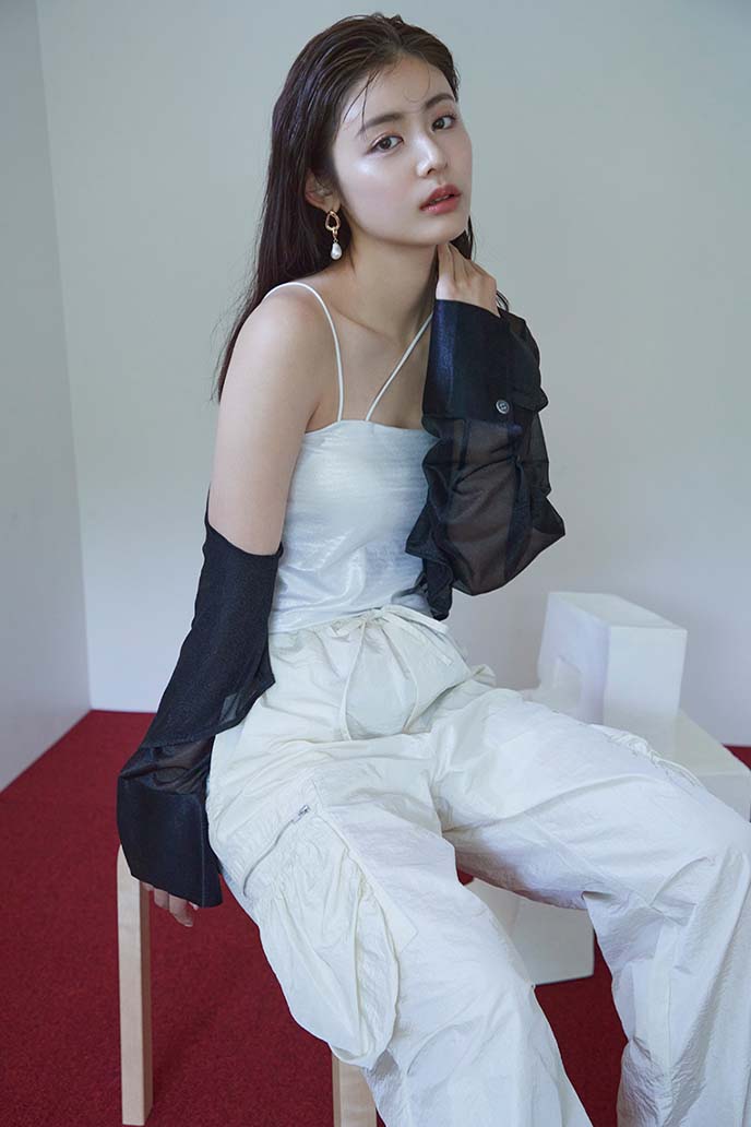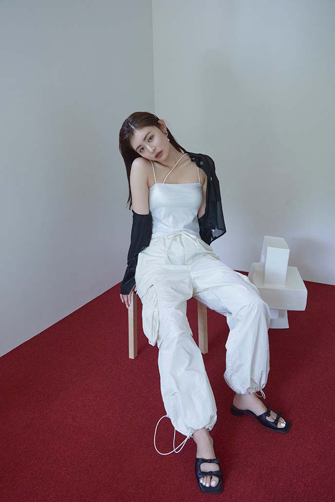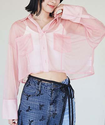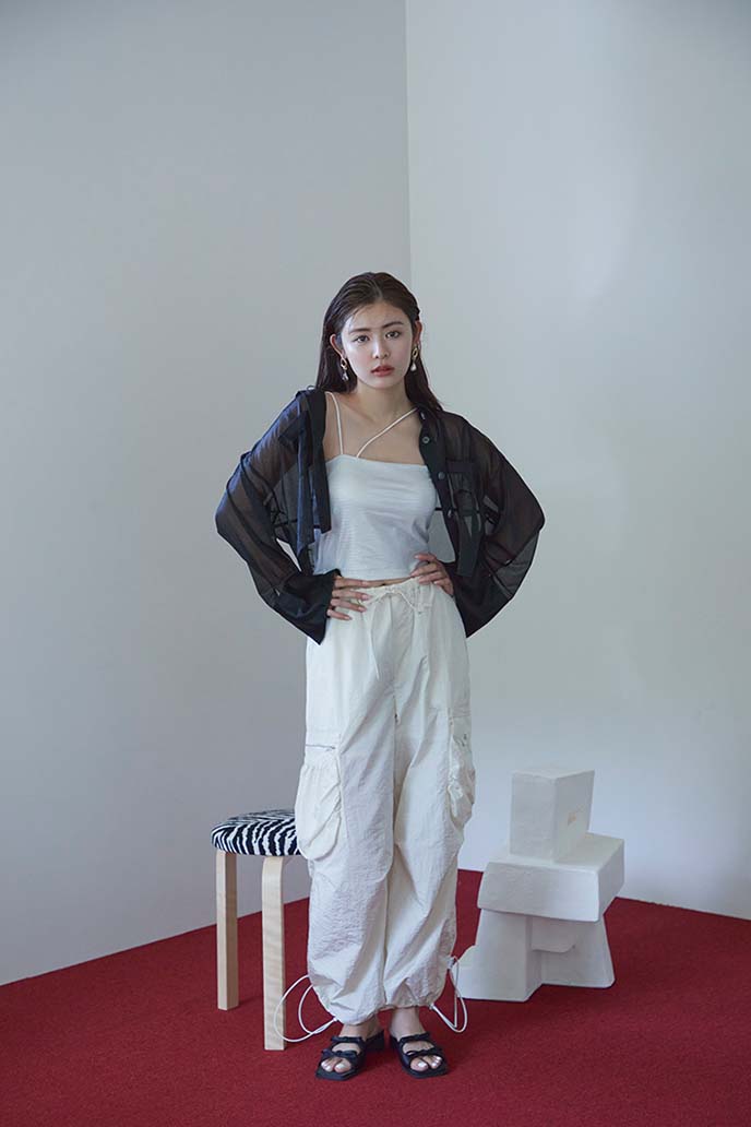 コンパクトなキャミ&シアーシャツの肌見せで
