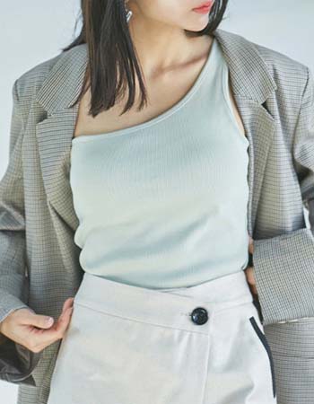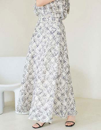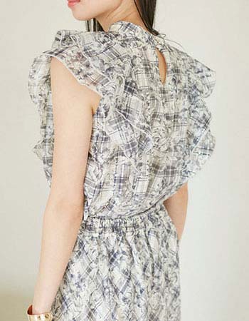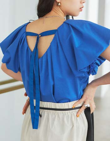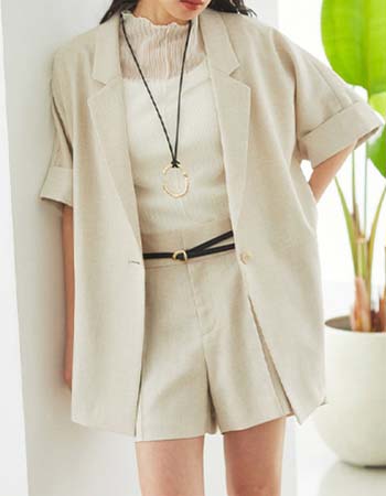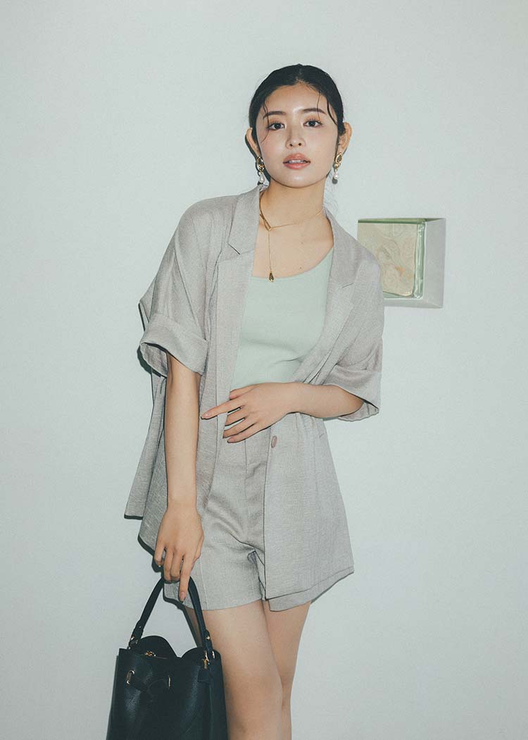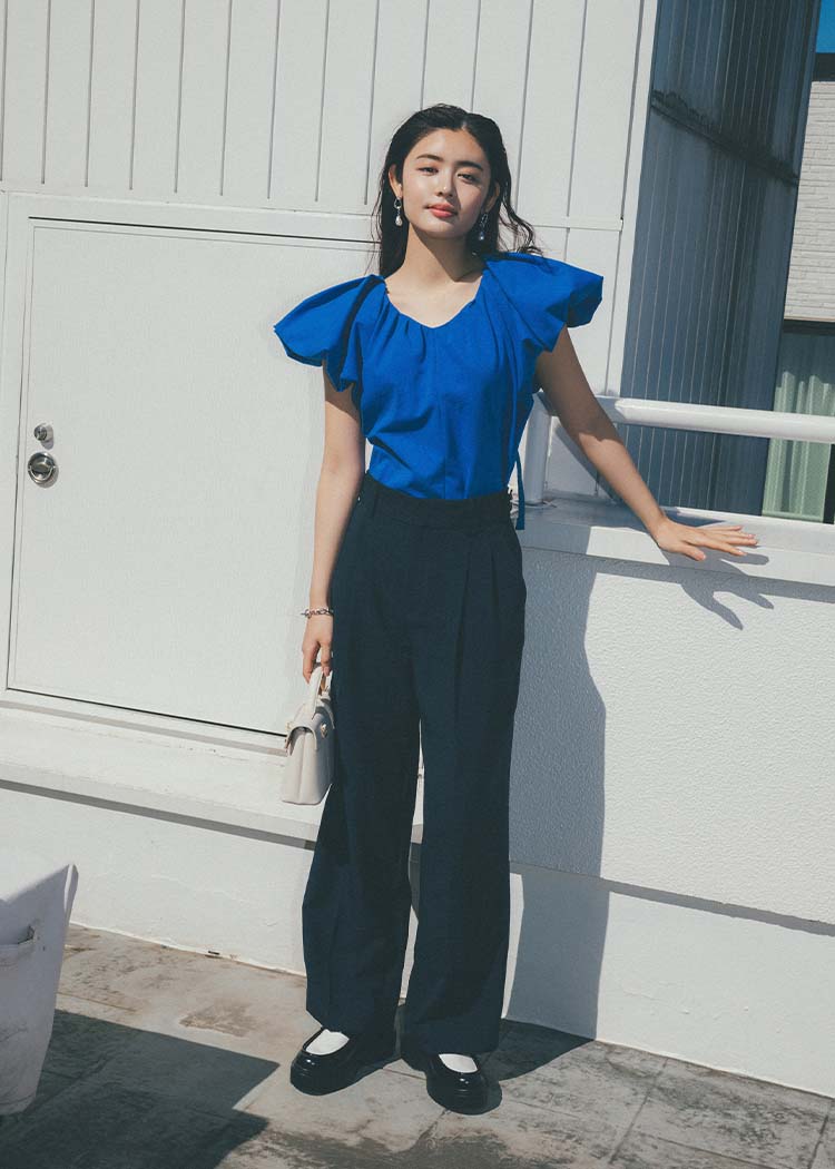 たっぷりなセットアップ。ブラウスのえり元のデザインや