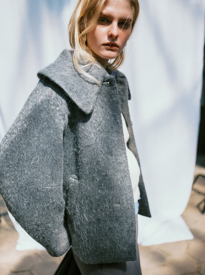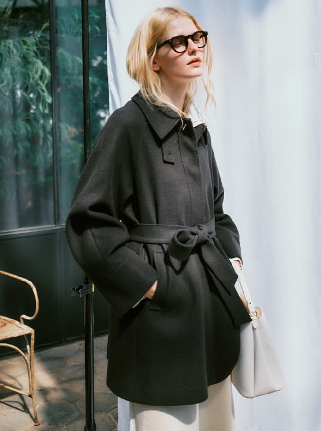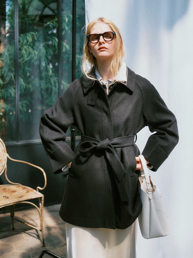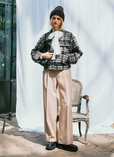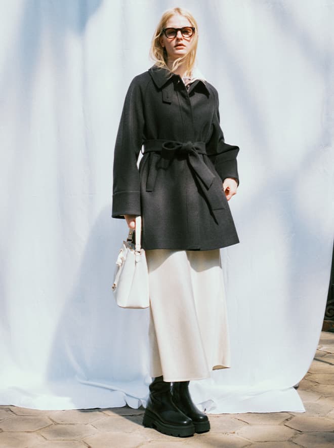 厚手のインナーを合わせてもすっきりとした見栄えに。