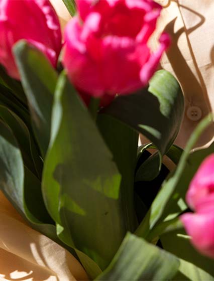 ベージュのくすみトーンが一気に華やいて、