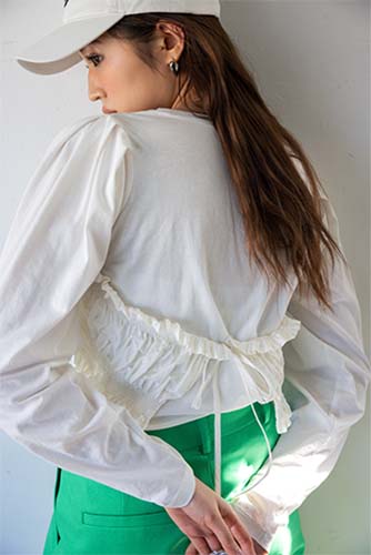 ホワイトなのに1枚で華やか見えが叶う便利アイテム。