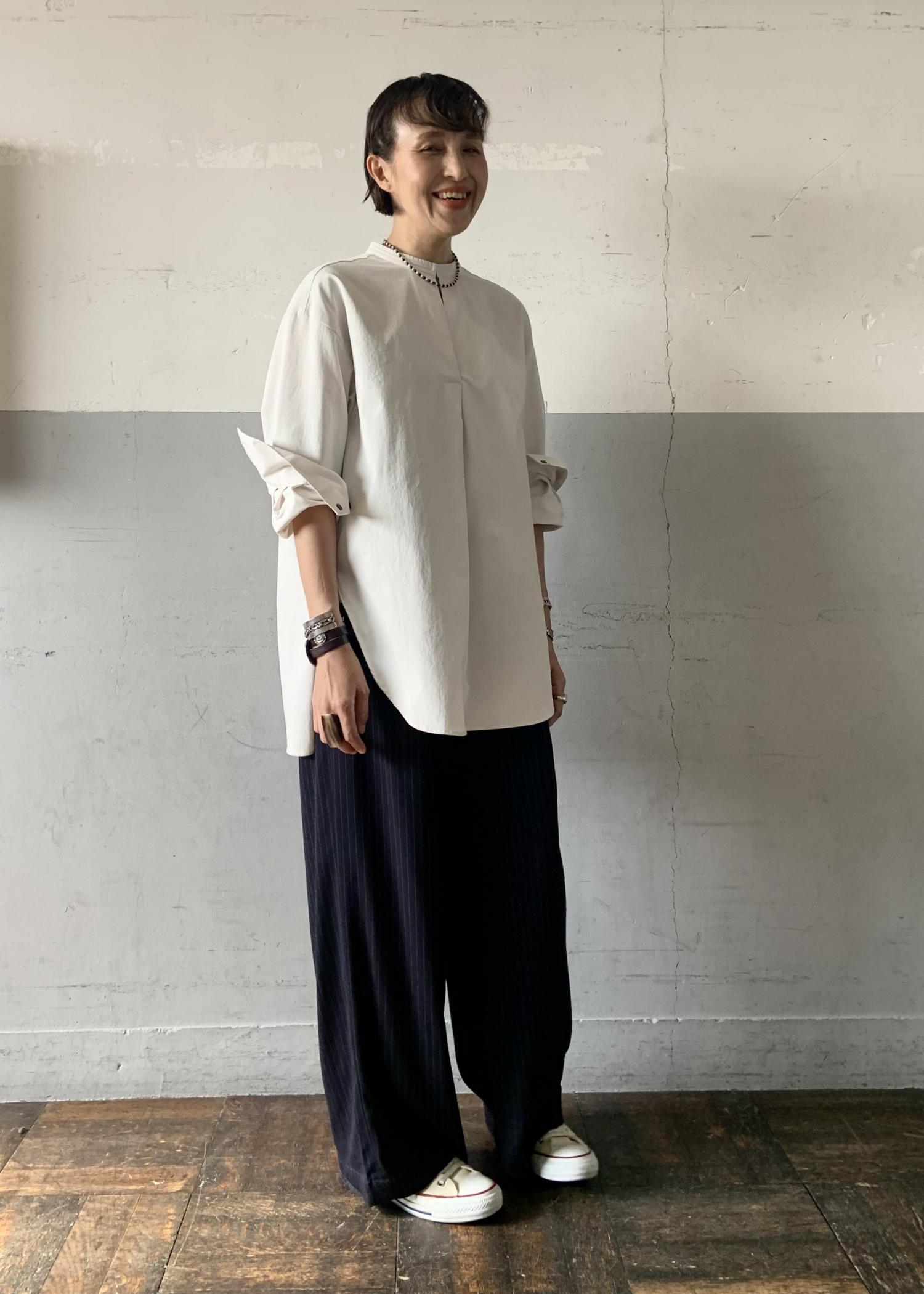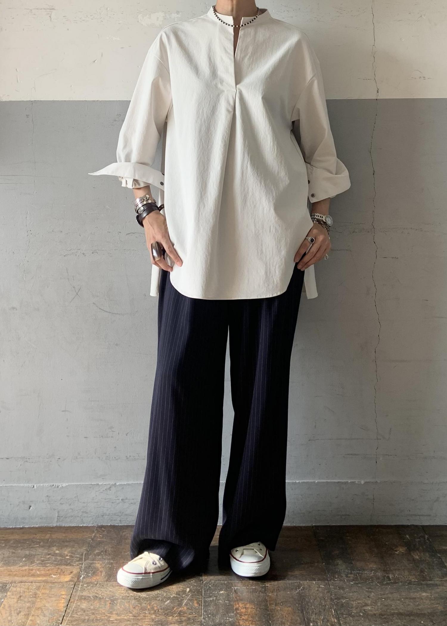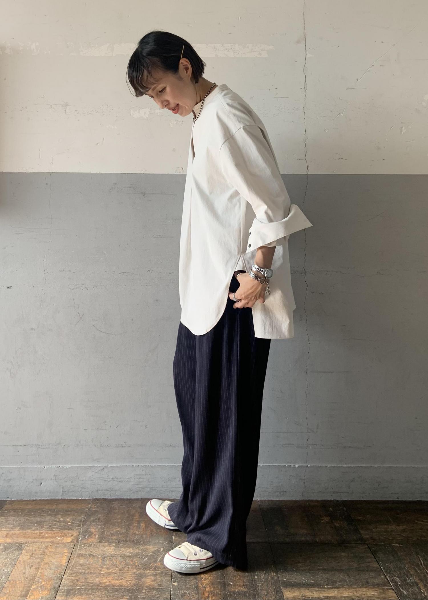 昨年も好評だったバックオープンバンドカラーシャツ。