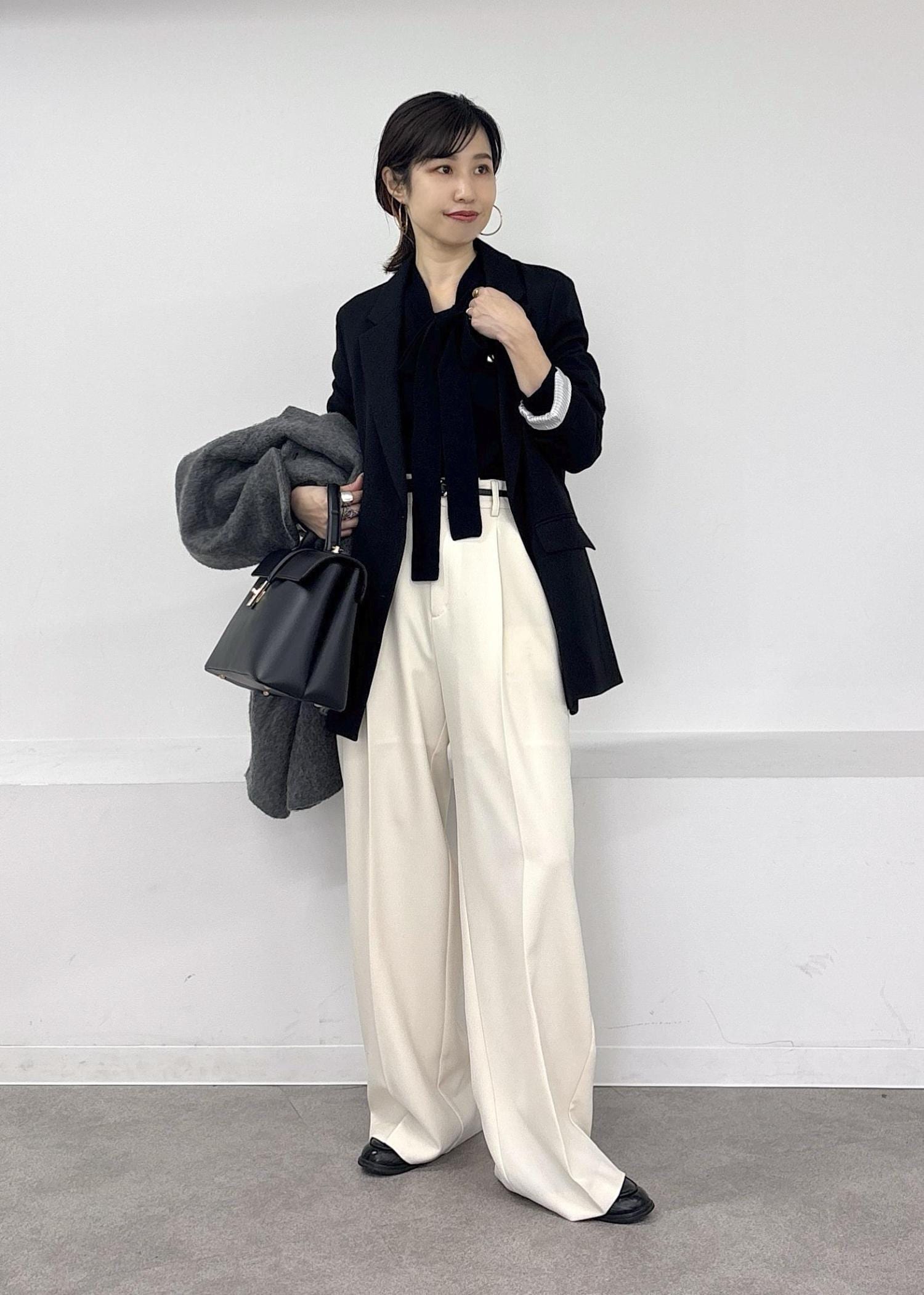 またヴィンテージライクなショルダーバッグは、前でキュッとコンパクトに持って頂くのが、このスタイリングではおすすめです!