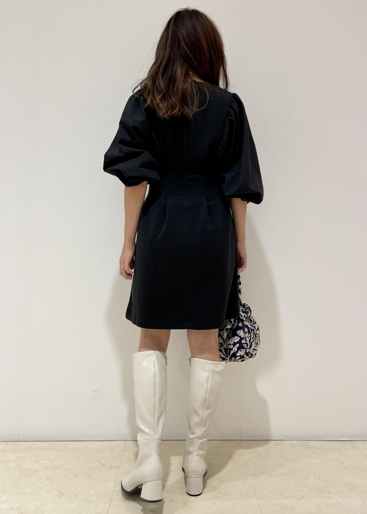 カラーはブラックで引き締めてすっきり見え効果も忘れず、柄バックをポイントで使ってみました。