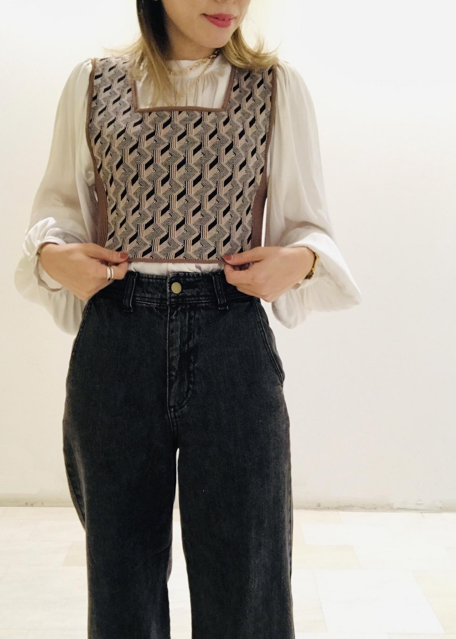 幾何学柄のニットビスチェは合わせるだけでトレンド感満載❤︎