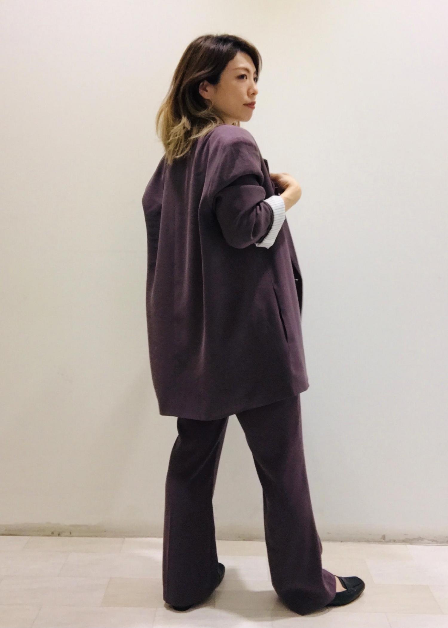 ジャケットは肩がけで羽織っていただくと一気にこなれ感も出ますよ☺︎