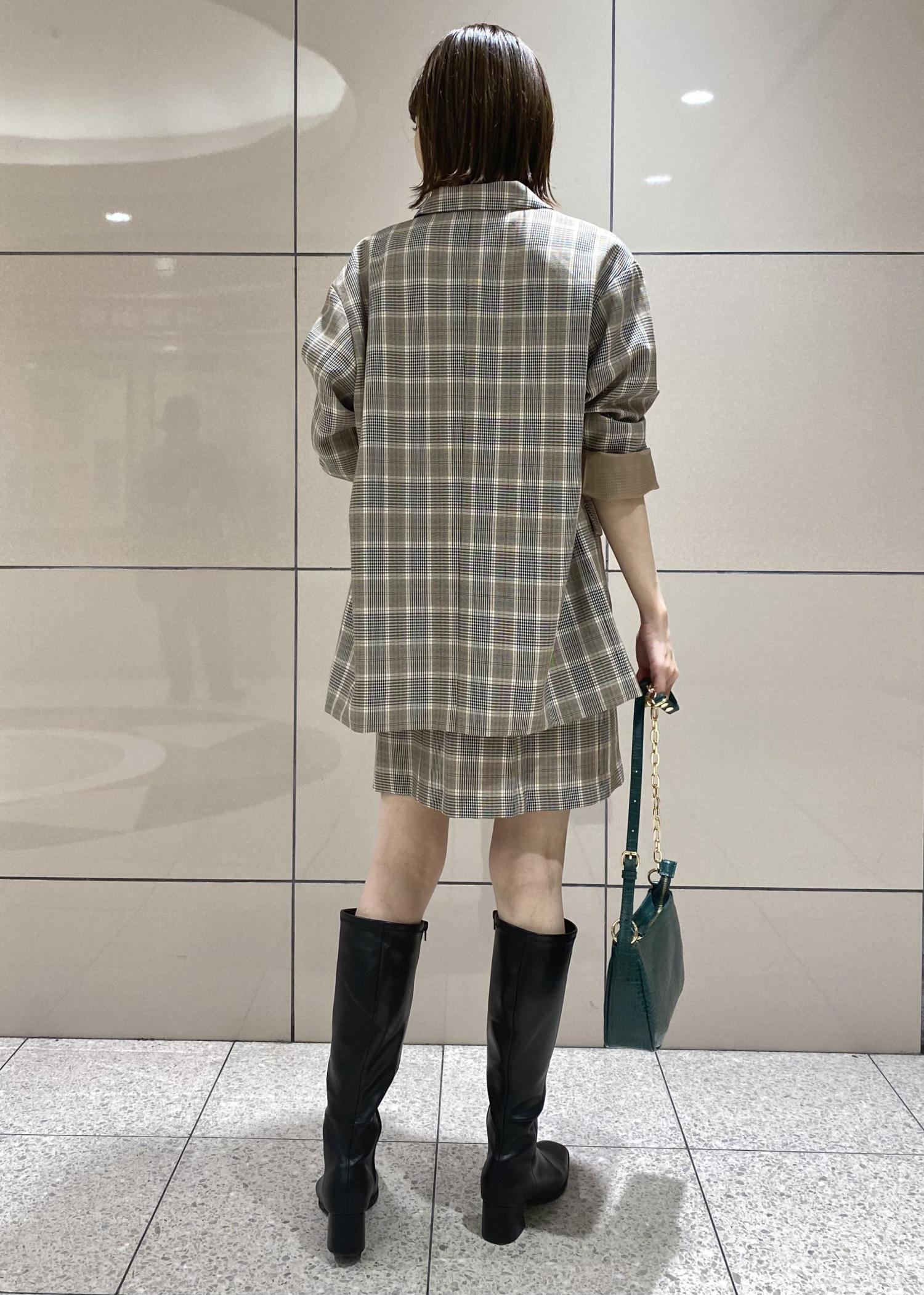 全体的にチェック柄やブラックで纏めたので、バッグにグリーンを選んだのもポイントです☺︎