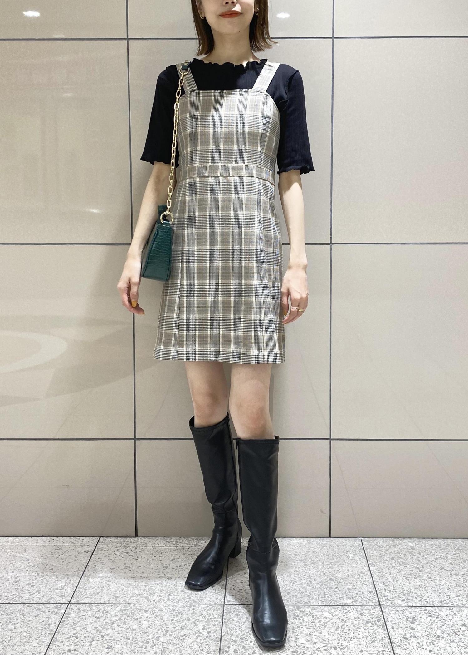 ミニ丈ワンピ×ロングブーツを合わせて女らしく着てみました♡