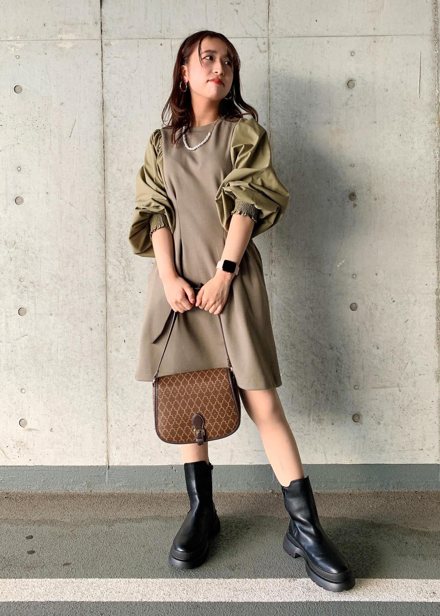 ミニ丈のワンピースはショートブーツを合わせると低身長さんでもバランスよく、程よい肌見せになるのでオススメです☺︎