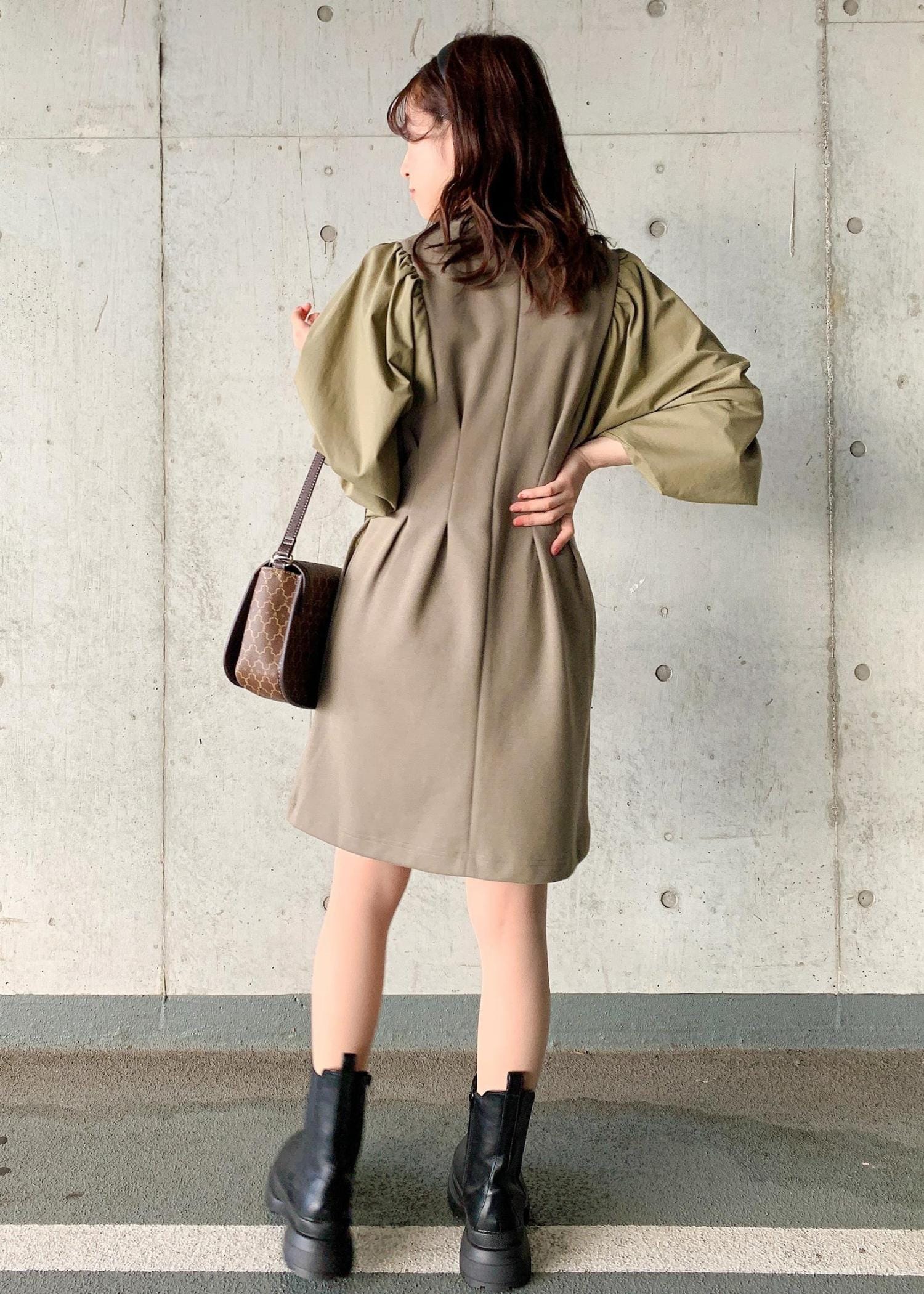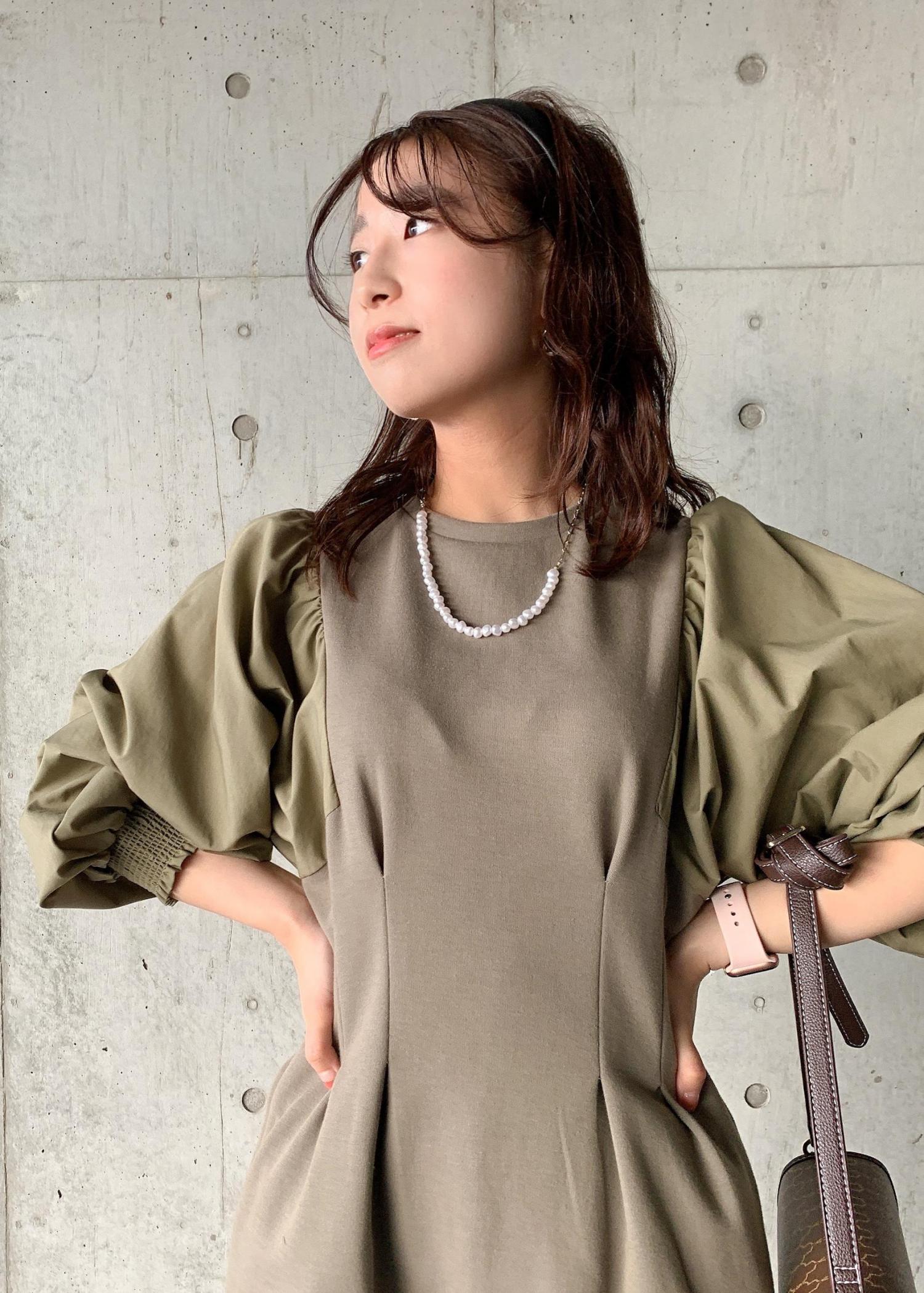 袖にボリュームが出るデザインで目線が上がりやすく、低身長さんにもおすすめのワンピースとなっています!