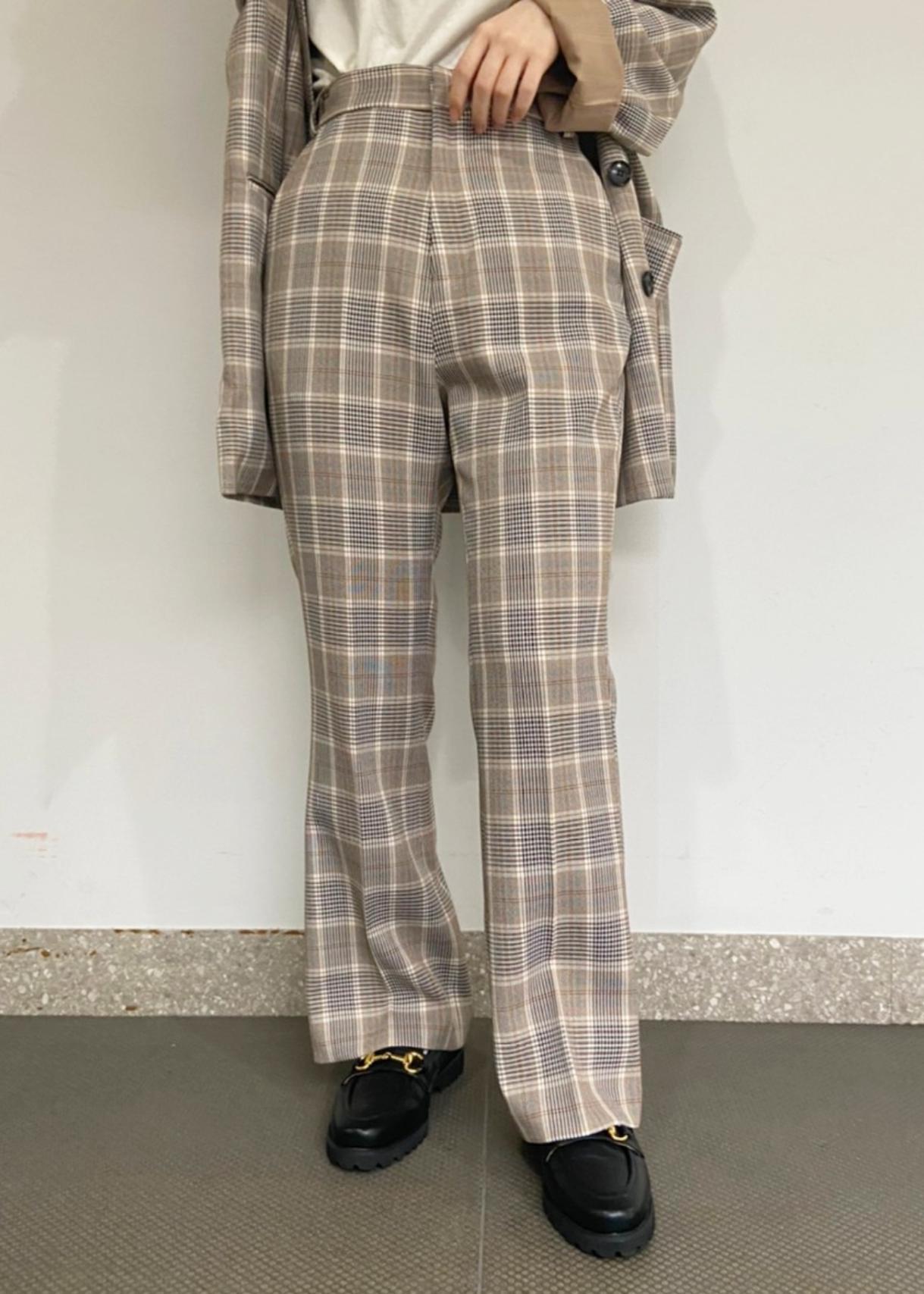 パンツもセミフレアになっているので、上がゆったりとしたジャケットでもバランス良く見えますよ。