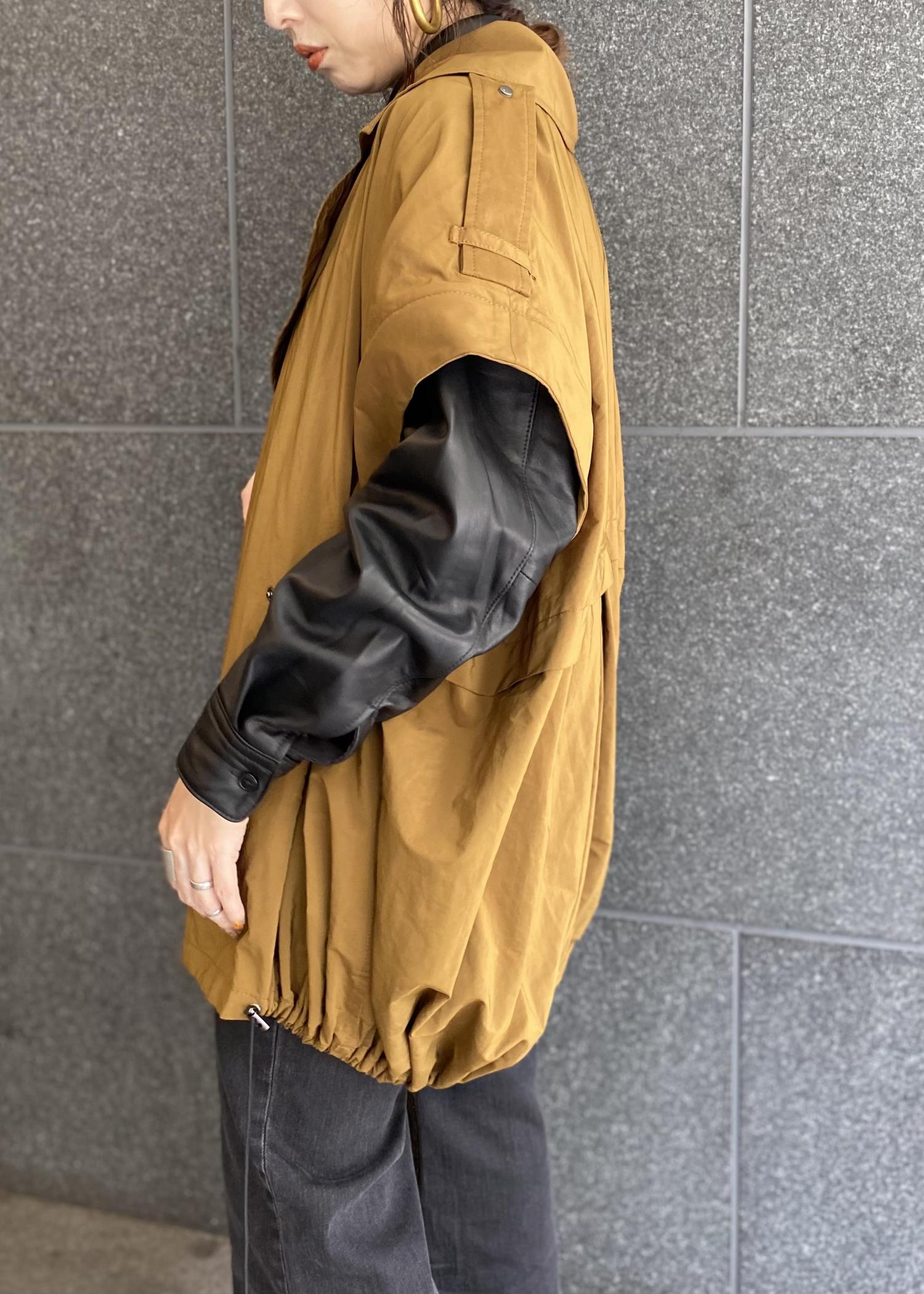 袖からも見えるレザーもワンポイントになり、