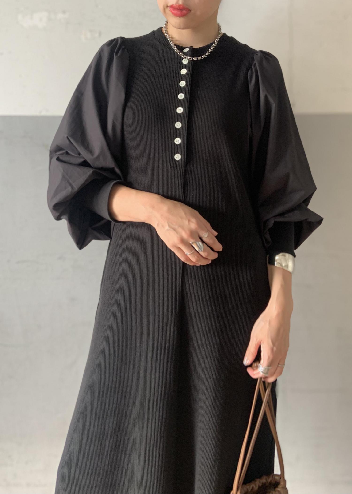 ボタンディテールロングスリーブワンピース