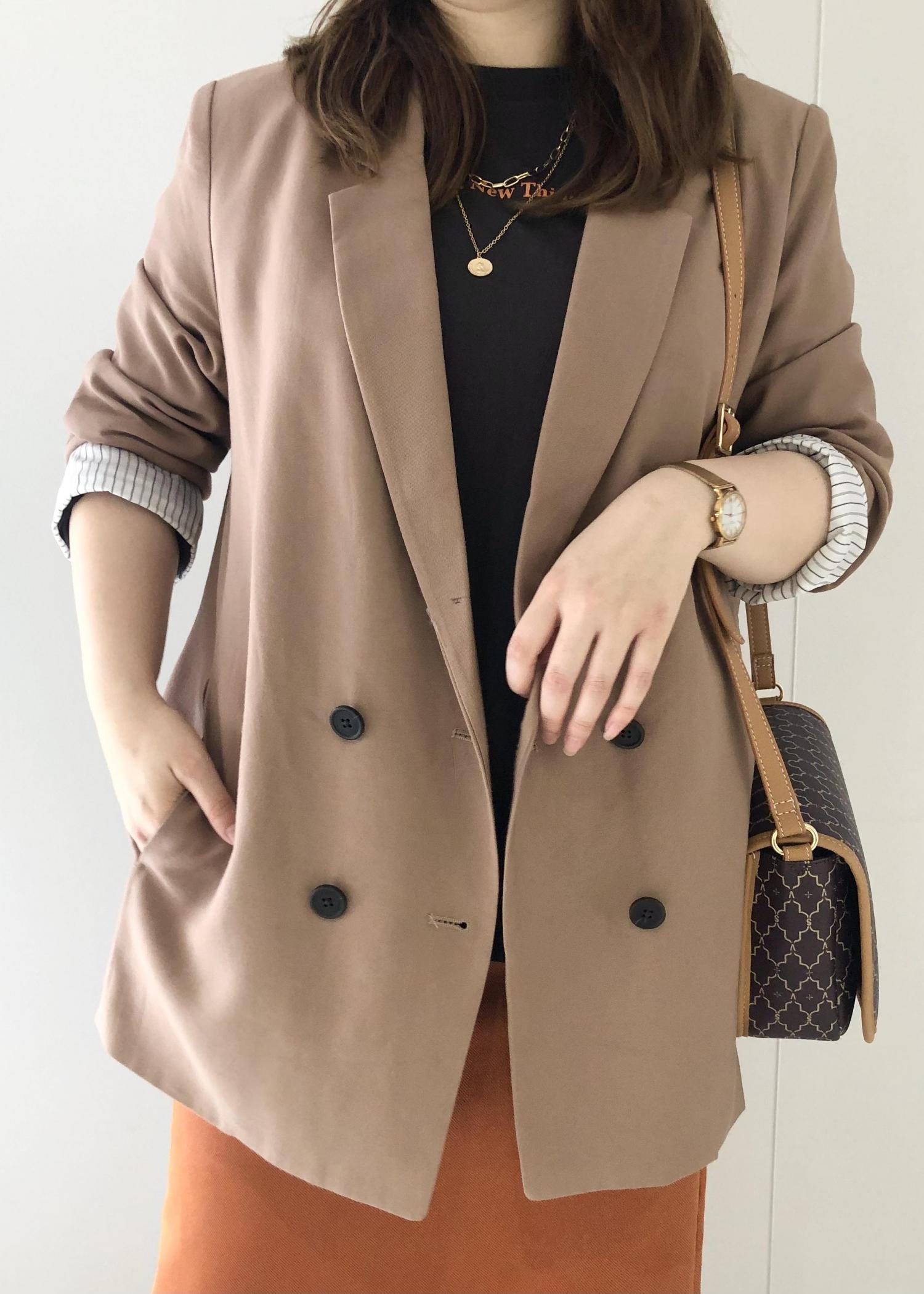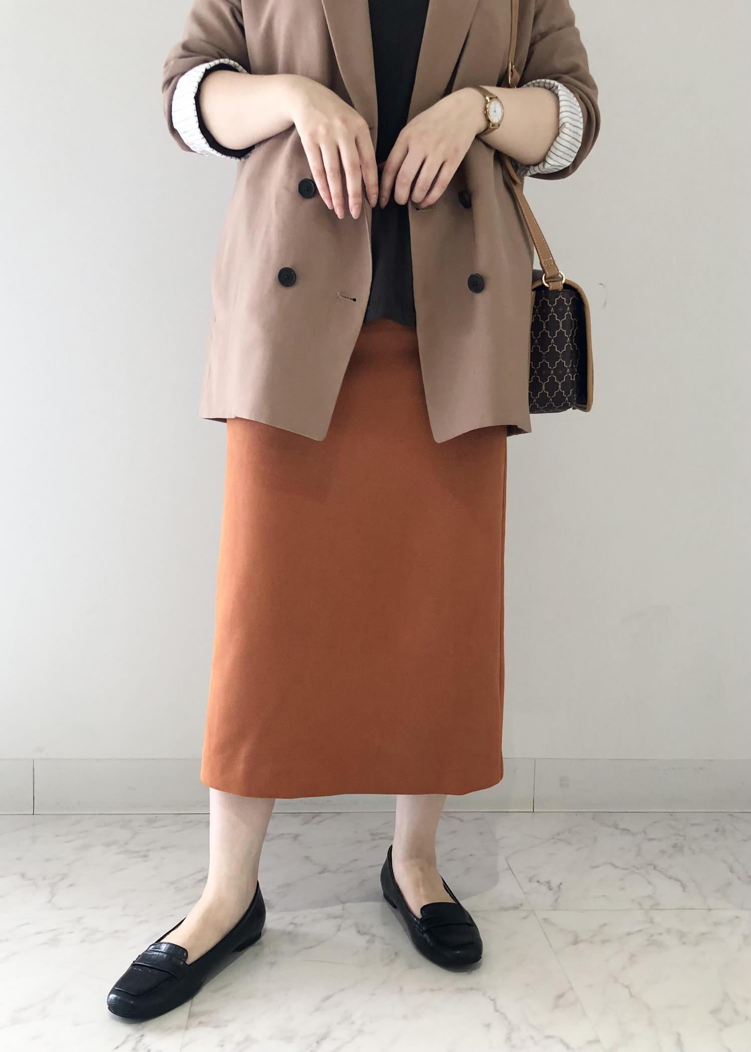 きちんと感があるジャケット×タイトスカートにカジュアルなロンTを合わせてラフさも出した大人コーデに☆