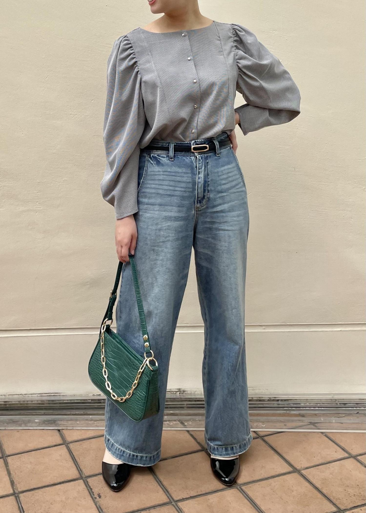 私は骨格ストレートタイプなのでボリューム袖のトップスは苦手なのですが、こちらはスクエアネックでデコルテをすっきり見せられるので着やすいです◎