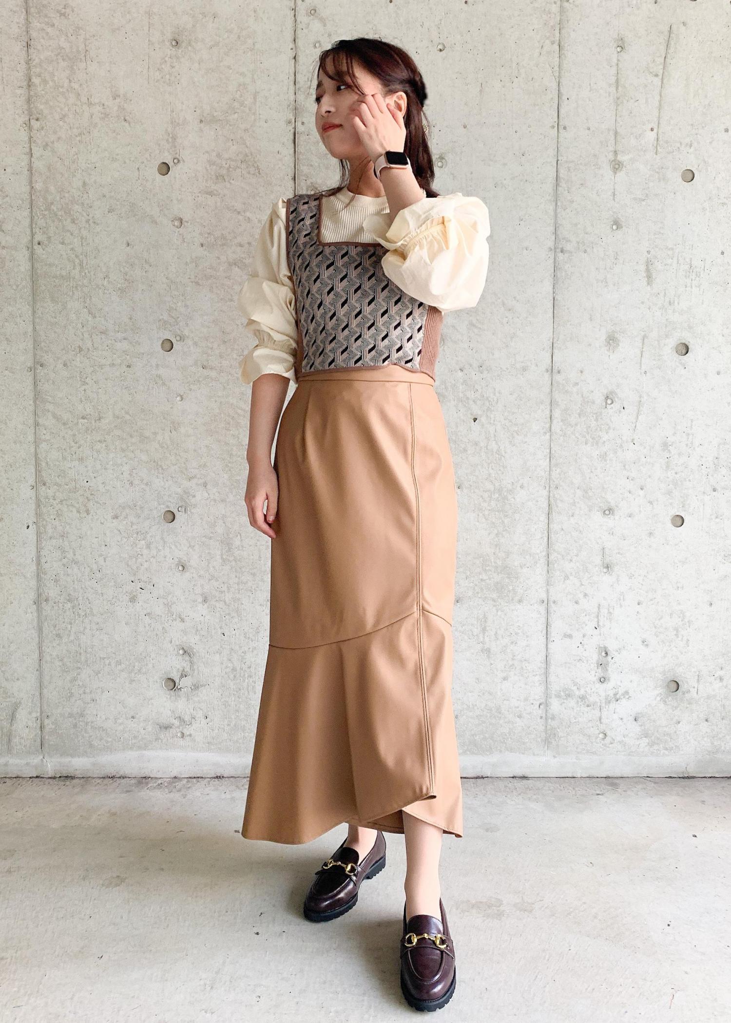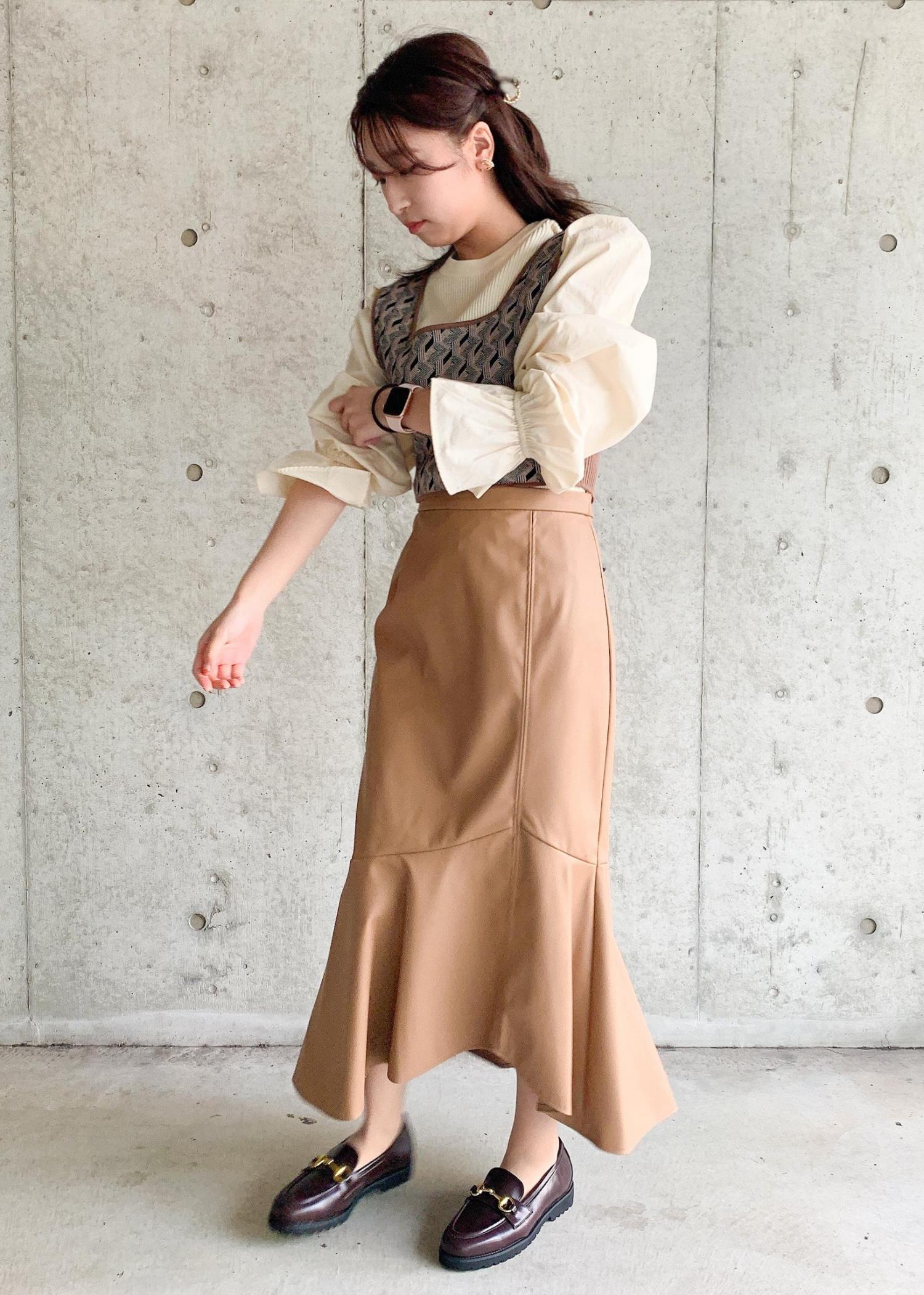 マーメイドスカートはTシャツなどと合わせると、よりカジュアルになります!